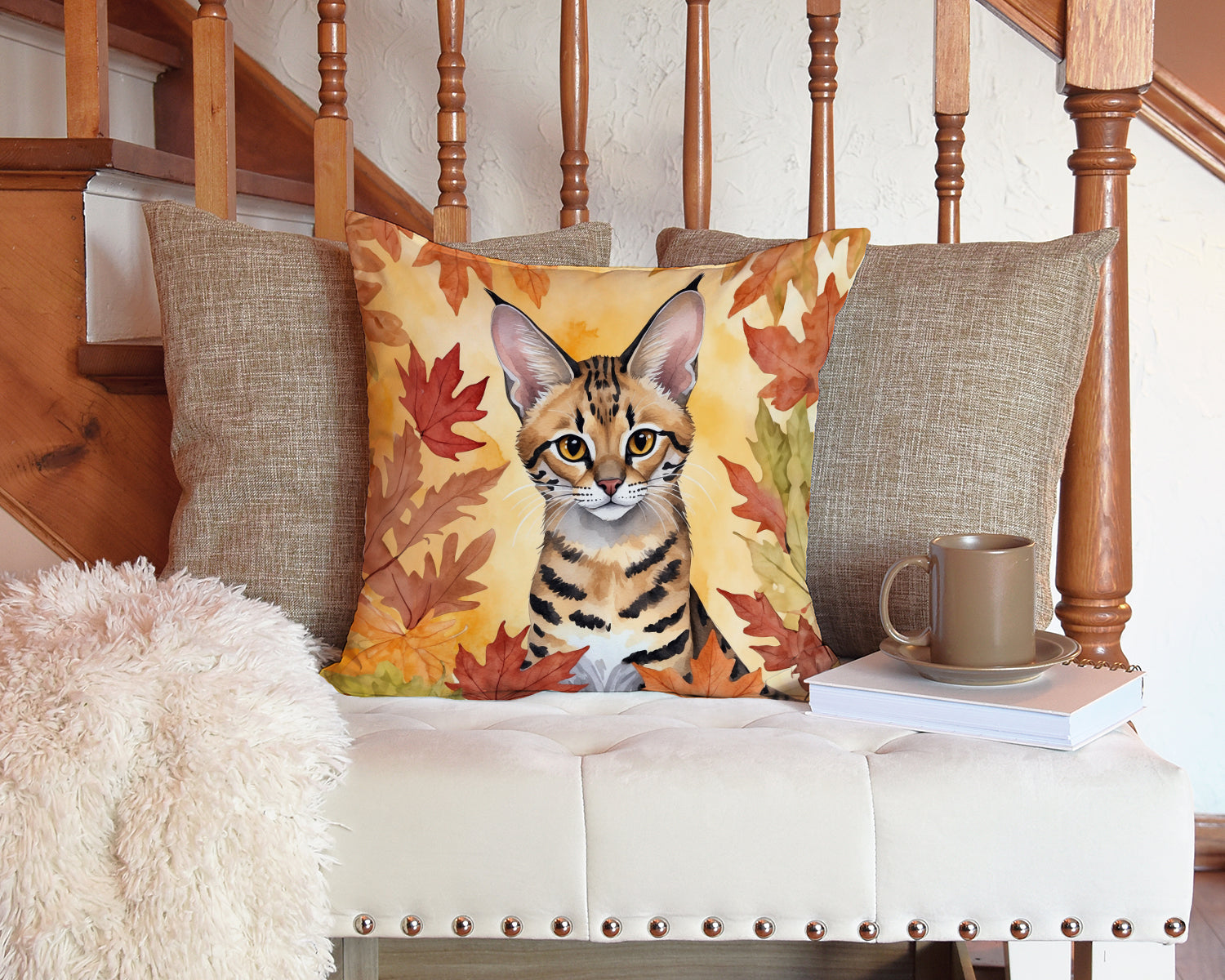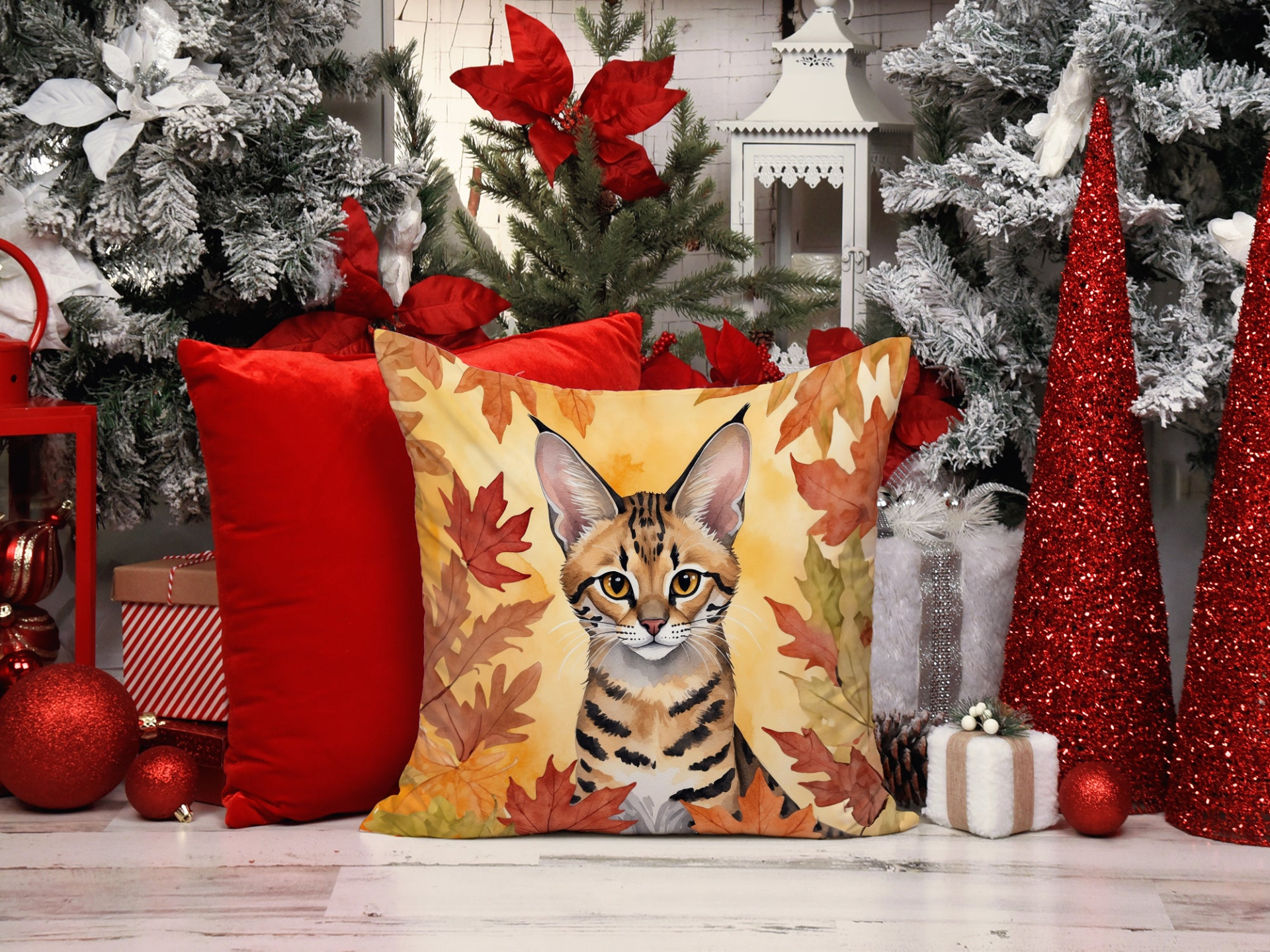 Throw Pillow featuring breed specific Savannah Cat artwork. Celebrate Halloween with this Halloween Pillow. Add a touch of vibrancy and comfort to your outdoor seating with Caroline's Treasures Fabric Decorative Pillow. Measuring approximately 14 inches by 14 inches, this outdoor pillow is crafted to elevate the appeal of your patio furniture, infusing it with vivid color and artistic flair. The pillow includes a 100% Polyester Fabric sham filled with a quality pillow form to provide superior comfort. Innovatively made from our brand new material, specifically woven for its water resistance, this pillow is designed for durability. The soft canvas fabric offers versatility in use, fit for your indoor couch or your outdoor patio, porch, or veranda. The fabric is dyed with colorfast dyes built for resilience against weather conditions, ensuring the pillow retains its beauty over time. Constructed by sewing three fabric pieces to create a sham, the polyester insert is then nestled inside to form the pillow, resulting in an overstuffed pillow that maintains its shape. Both the sham and the pillow insert are proudly made in the United States. As the pillows are handcrafted, there may be minor variations in size, further enhancing their unique charm. Experience comfort in style with Caroline's Treasures Fabric Decorative Pillow.