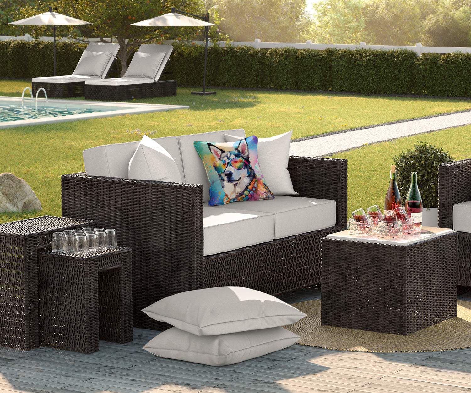 Throw Pillow featuring breed specific Siberian Husky artwork. Revitalize your outdoor or indoor living space with Caroline's Treasures 18x18 Fabric Decorative Pillow. With a generously sized dimension of approximately 18 inches by 18 inches, this pillow makes a comfortable and aesthetic addition to any seating area. Made from a unique, water-resistant material developed by Caroline's Treasures, the pillow sham is 100% polyester fabric that's durable and ready to weather any condition. Its vibrant, full-color artwork will not fade over time as it is dyed with color-fast dyes. Whether you place it on your patio furniture, porch, veranda, or indoor couch, its soft canvas fabric ensures a cozy experience. The pillow is handcrafted in the United States, featuring a sham created from three pieces of fabric and a polyester insert for enduring shape and overstuffed comfort. Despite being robustly built to endure the outdoors, it is as soft and snug as your favorite indoor cushions. Please note, as all our pillows are handmade, sizes may vary slightly, adding to the charm of this unique decorative item.