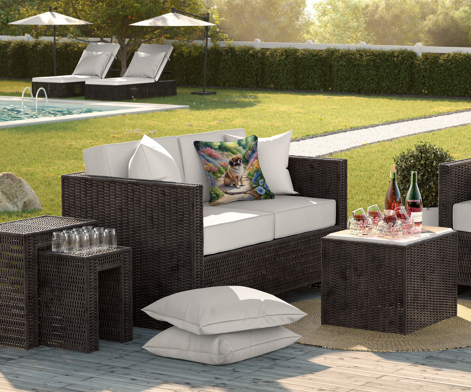 Throw Pillow featuring breed specific Tibetan Spaniel artwork. Revitalize your outdoor or indoor living space with Caroline's Treasures 18x18 Fabric Decorative Pillow. With a generously sized dimension of approximately 18 inches by 18 inches, this pillow makes a comfortable and aesthetic addition to any seating area. Made from a unique, water-resistant material developed by Caroline's Treasures, the pillow sham is 100% polyester fabric that's durable and ready to weather any condition. Its vibrant, full-color artwork will not fade over time as it is dyed with color-fast dyes. Whether you place it on your patio furniture, porch, veranda, or indoor couch, its soft canvas fabric ensures a cozy experience. The pillow is handcrafted in the United States, featuring a sham created from three pieces of fabric and a polyester insert for enduring shape and overstuffed comfort. Despite being robustly built to endure the outdoors, it is as soft and snug as your favorite indoor cushions. Please note, as all our pillows are handmade, sizes may vary slightly, adding to the charm of this unique decorative item.