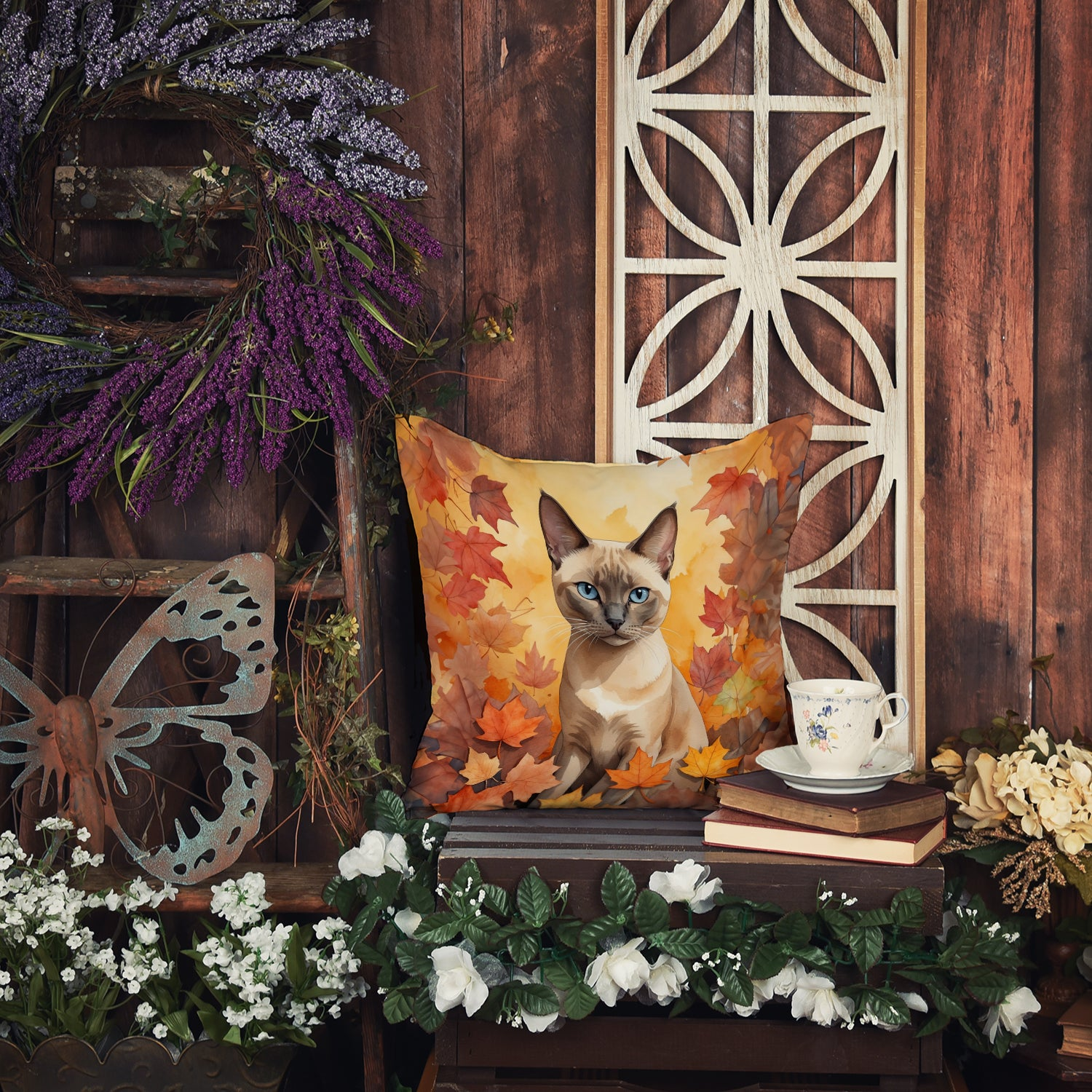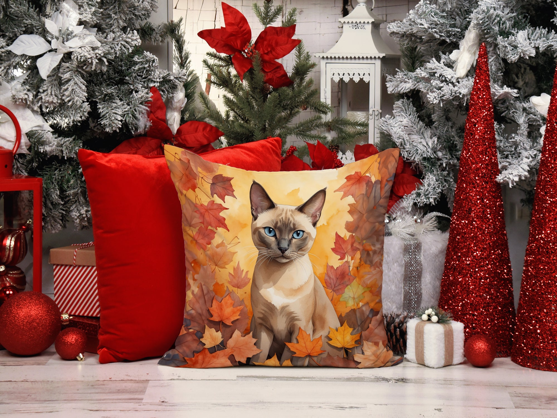 Throw Pillow featuring breed specific Tonkinese artwork. Celebrate Halloween with this Halloween Pillow. Add a touch of vibrancy and comfort to your outdoor seating with Caroline's Treasures Fabric Decorative Pillow. Measuring approximately 14 inches by 14 inches, this outdoor pillow is crafted to elevate the appeal of your patio furniture, infusing it with vivid color and artistic flair. The pillow includes a 100% Polyester Fabric sham filled with a quality pillow form to provide superior comfort. Innovatively made from our brand new material, specifically woven for its water resistance, this pillow is designed for durability. The soft canvas fabric offers versatility in use, fit for your indoor couch or your outdoor patio, porch, or veranda. The fabric is dyed with colorfast dyes built for resilience against weather conditions, ensuring the pillow retains its beauty over time. Constructed by sewing three fabric pieces to create a sham, the polyester insert is then nestled inside to form the pillow, resulting in an overstuffed pillow that maintains its shape. Both the sham and the pillow insert are proudly made in the United States. As the pillows are handcrafted, there may be minor variations in size, further enhancing their unique charm. Experience comfort in style with Caroline's Treasures Fabric Decorative Pillow.