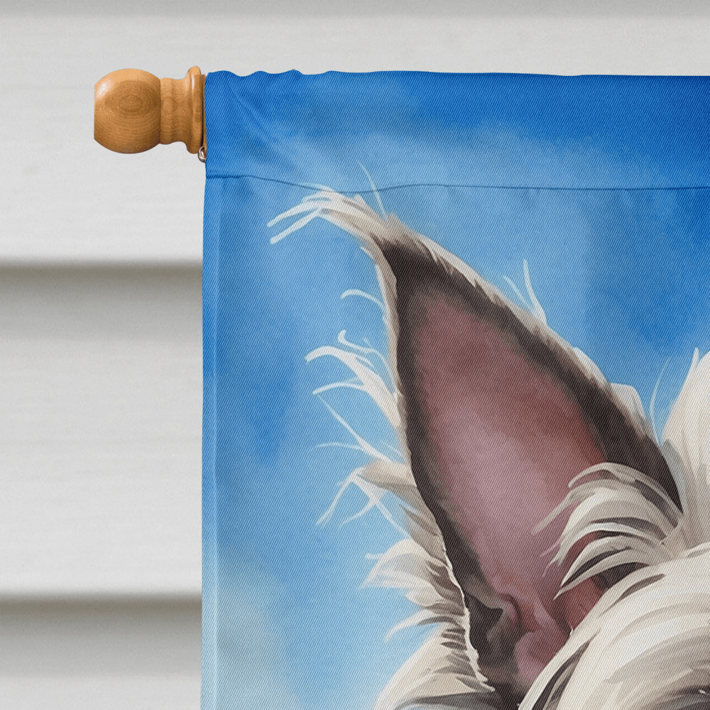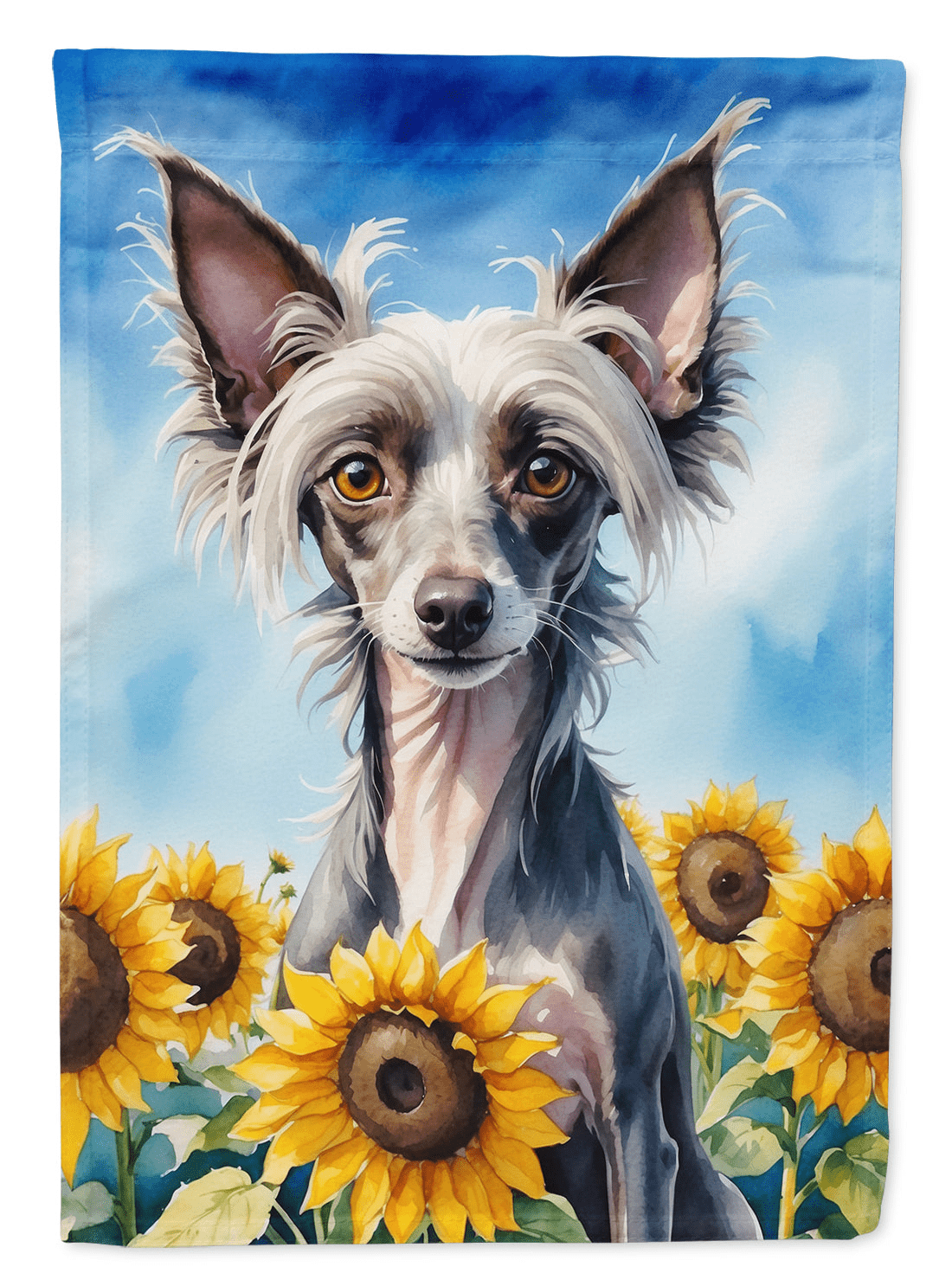 Invite sunshine into your doorway with our Chinese Crested in Sunflowers House Flag. This heavy-duty polyester banner celebrates your pup with vibrant artistry, inviting warmth to your entryway. The dual-sided print keeps the joyful artwork visible from every angle, so your home greets guests with style and grace. Perfect for pet parents who want a little daily luxury and cheerful charm on display for guests and family alike.