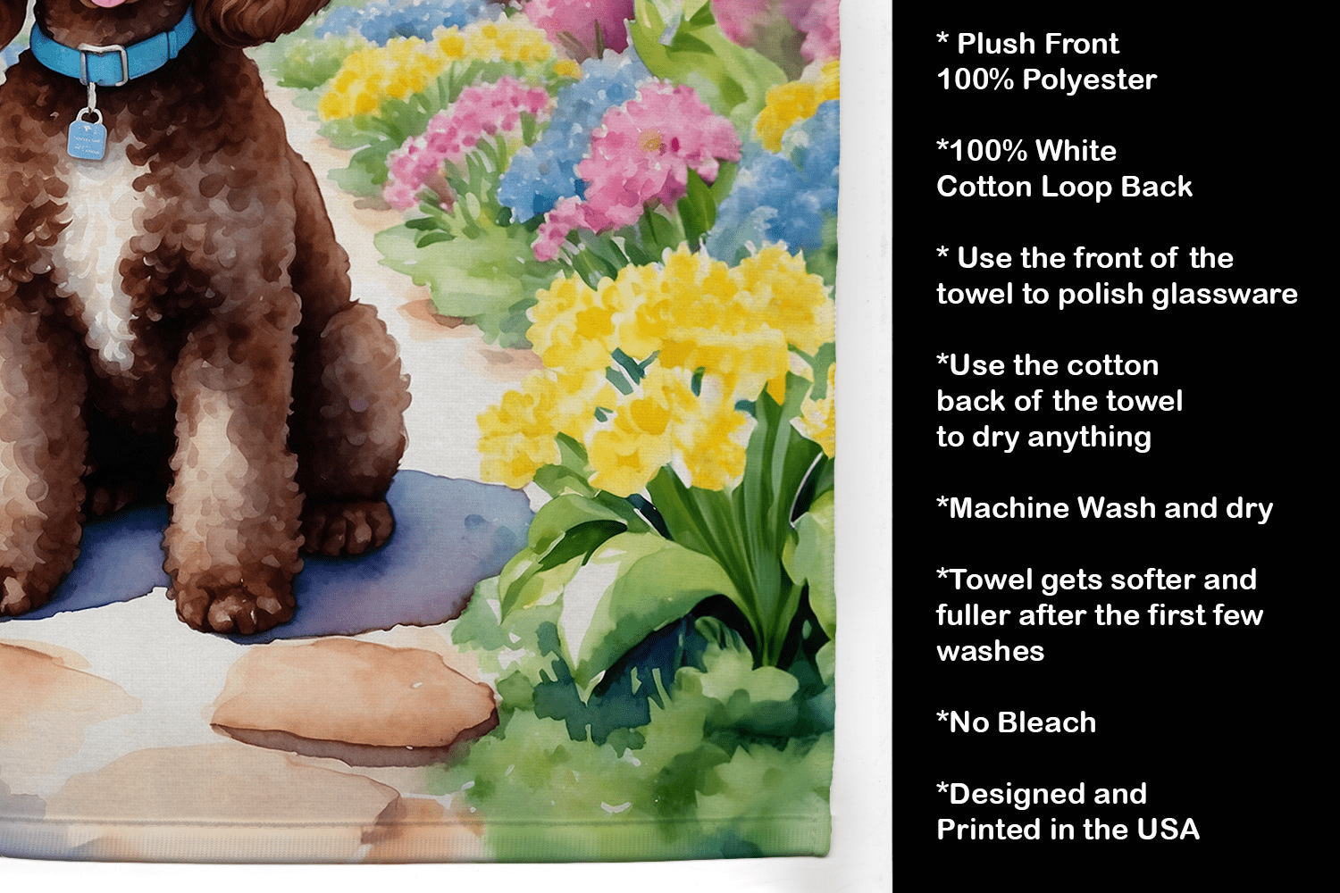 Indulge your kitchen with a touch of couture courtesy of our Chocolate Poodle Spring Path Kitchen Towel. This plush velour towel blends artful breed-inspired design with everyday practicality, turning a simple wipe into a moment of luxe. Your kitchen will feel more glamorous, as this towel’s soft minky front and absorbent cotton back make drying dishes and polishing glassware a delight.