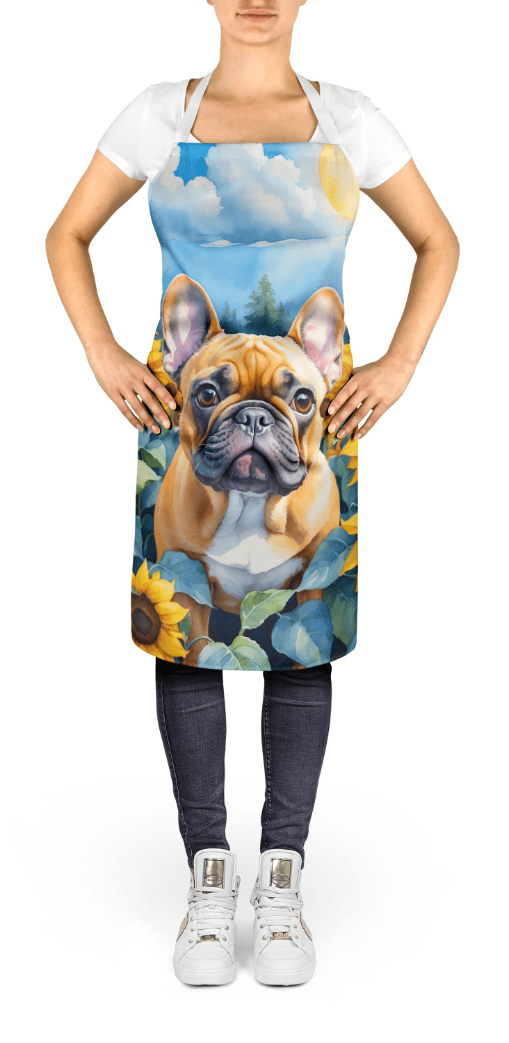 Bring a splash of whimsy to every kitchen moment with the French Bulldog in Sunflowers Apron. This bib-style apron protects your clothes while you cook, bake, grill, or craft, elevating daily tasks with a touch of artful charm. Crafted from durable, lightweight 100% Ultra Spun Polyester, it dries quickly and resists staining, so you can feel confident and stylish as you work. With white tie straps and a unisex fit, it’s perfect for daily use and makes a fashionable statement during any activity.
