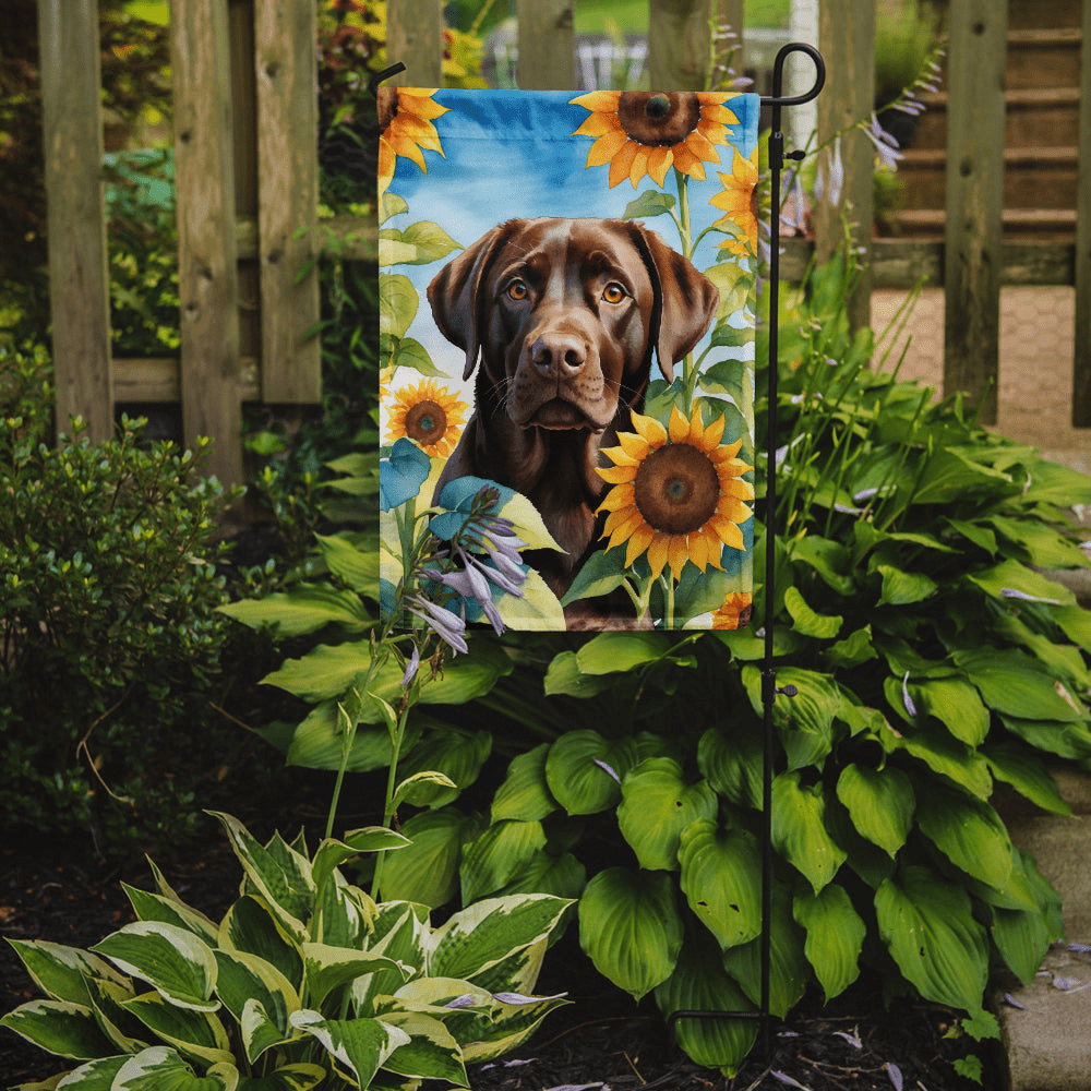 Bring a burst of sunshine to your garden with this Labrador Retriever in Sunflowers Garden Flag. Designed to celebrate your favorite breed, this yard flag layers cheerful art with sturdy, weather-ready construction so your outdoor space feels lifted year-round. Made in the USA and crafted from thick, double-sided polyester, it remains readable from every angle and stands up to wind, rain, and snow—perfect for pet parents who want style + durability for their garden or porch.