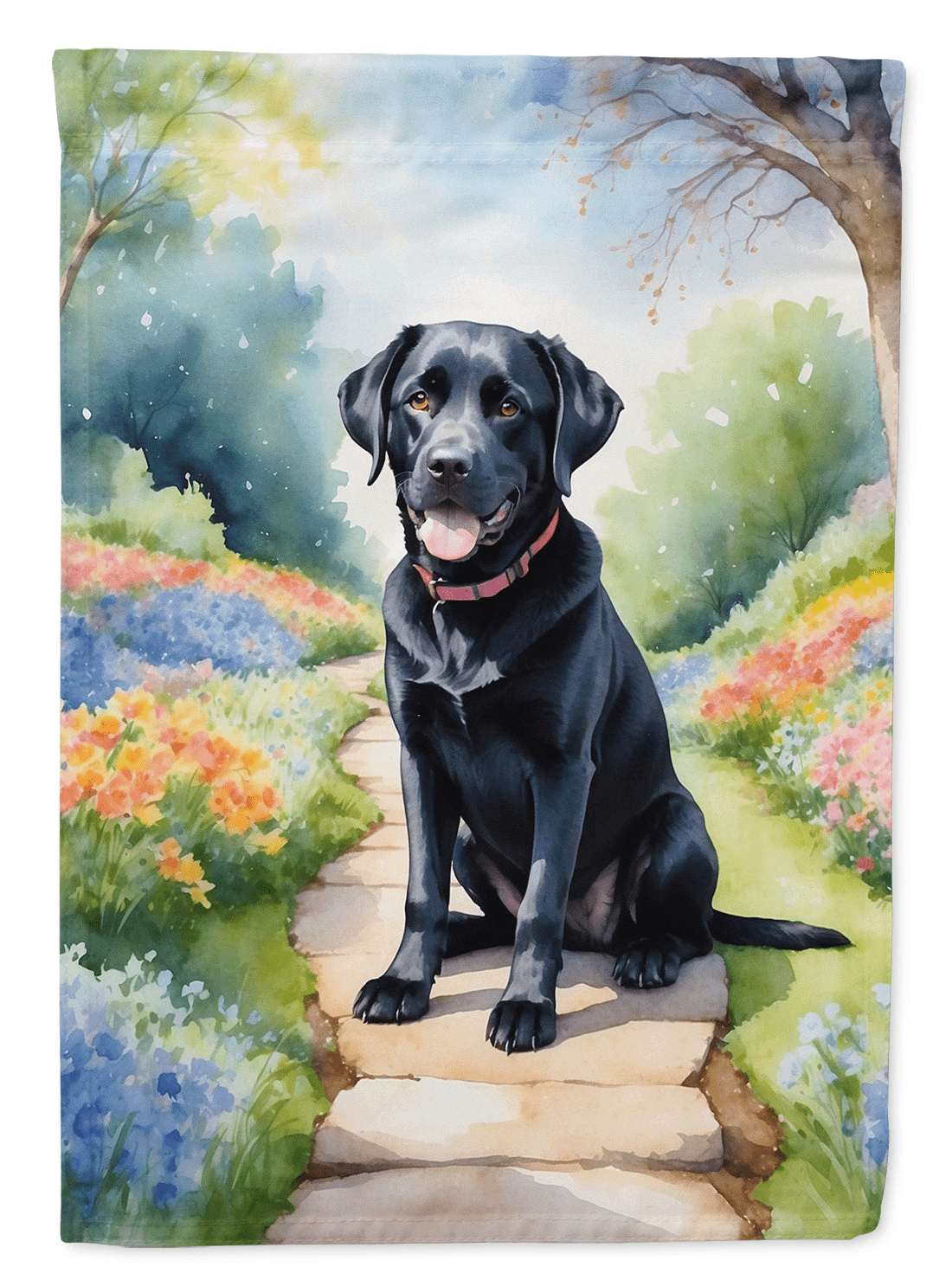 Labrador Retriever Spring Path House Flag - Heavy Duty Polyester Sleeve Pole Flag 28x40 Inches