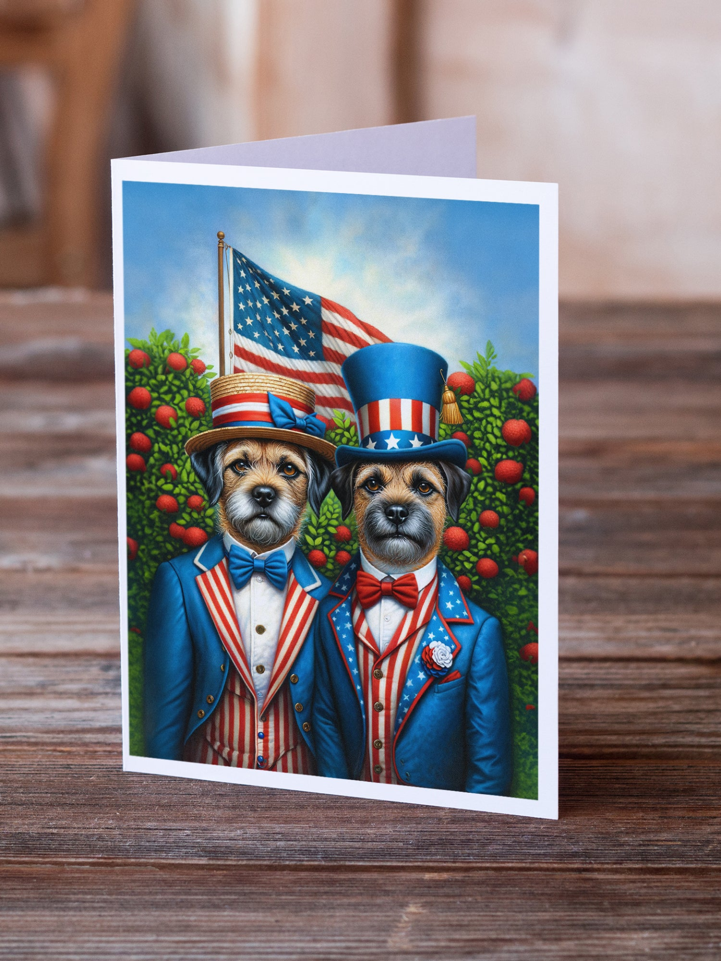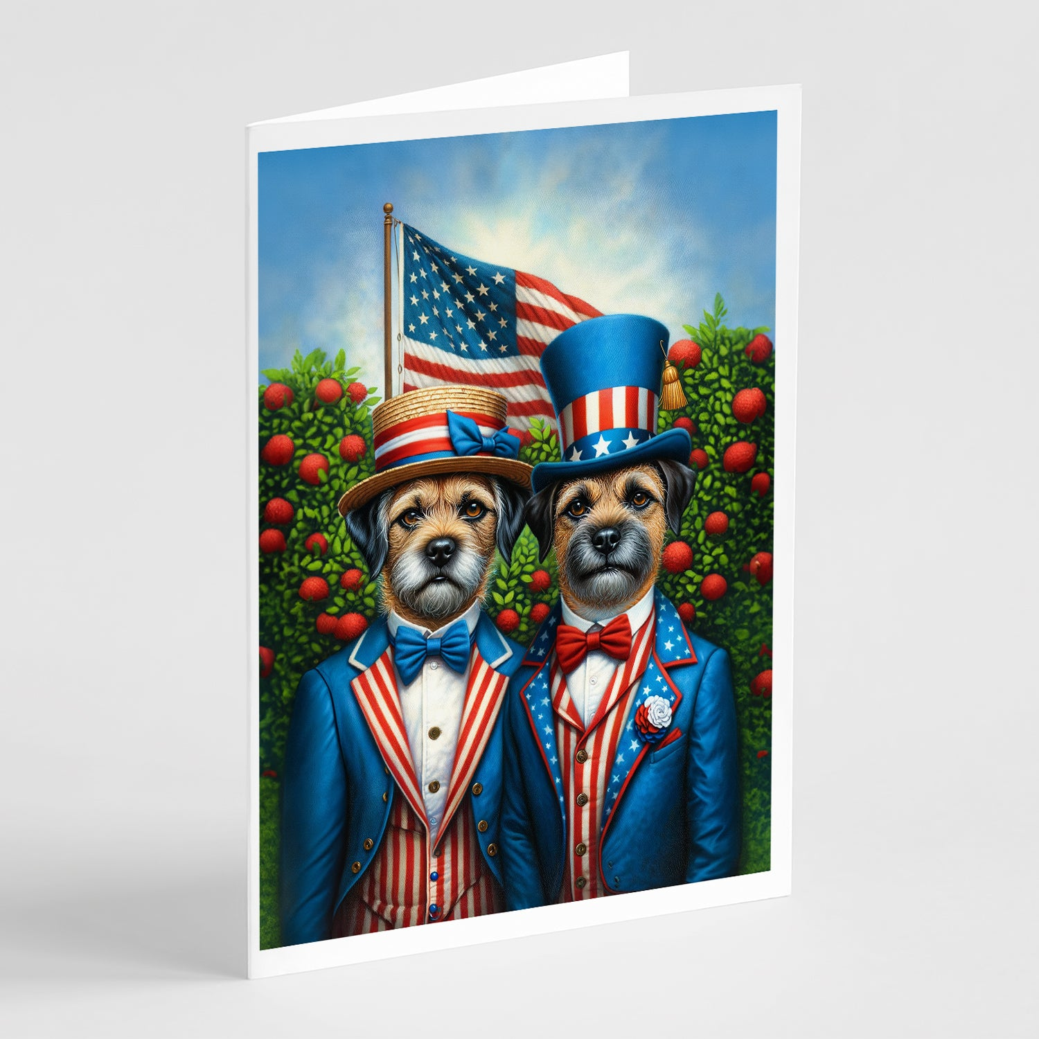 Greeting Cards Pack of 8 featuring breed specific Border Terrier artwork. Celebrate special moments with Caroline's Treasures Printed Greeting Card Pack. This pack includes eight beautifully folded 5x7 cards, accompanied by eight matching white envelopes. With blank interiors, these cards provide ample space for your personalized messages and heartfelt holiday greetings. Each card features captivating full-color artwork, meticulously printed in our facility on high-quality 80 lb cover stock or 216 GSM. The super smooth finish of the white cards enhances the visual impact of the artwork, creating a truly stunning presentation. Designed by our talented in-house artists or licensed artists, the artwork on these cards showcases their creativity and attention to detail. From vibrant illustrations to captivating designs, each card tells its own unique story. Whether it's for birthdays, anniversaries, holidays, or any special occasion, Caroline's Treasures Greeting Card Pack is the perfect way to convey your heartfelt sentiments. Share joy, love, and warm wishes with these exquisite cards and make every moment unforgettable.