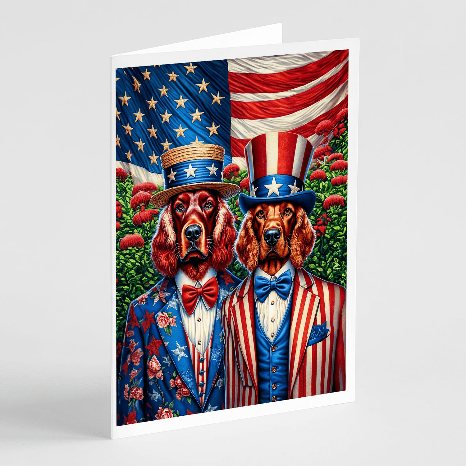 Greeting Cards Pack of 8 featuring breed specific Irish Setter artwork. Celebrate special moments with Caroline's Treasures Printed Greeting Card Pack. This pack includes eight beautifully folded 5x7 cards, accompanied by eight matching white envelopes. With blank interiors, these cards provide ample space for your personalized messages and heartfelt holiday greetings. Each card features captivating full-color artwork, meticulously printed in our facility on high-quality 80 lb cover stock or 216 GSM. The super smooth finish of the white cards enhances the visual impact of the artwork, creating a truly stunning presentation. Designed by our talented in-house artists or licensed artists, the artwork on these cards showcases their creativity and attention to detail. From vibrant illustrations to captivating designs, each card tells its own unique story. Whether it's for birthdays, anniversaries, holidays, or any special occasion, Caroline's Treasures Greeting Card Pack is the perfect way to convey your heartfelt sentiments. Share joy, love, and warm wishes with these exquisite cards and make every moment unforgettable.