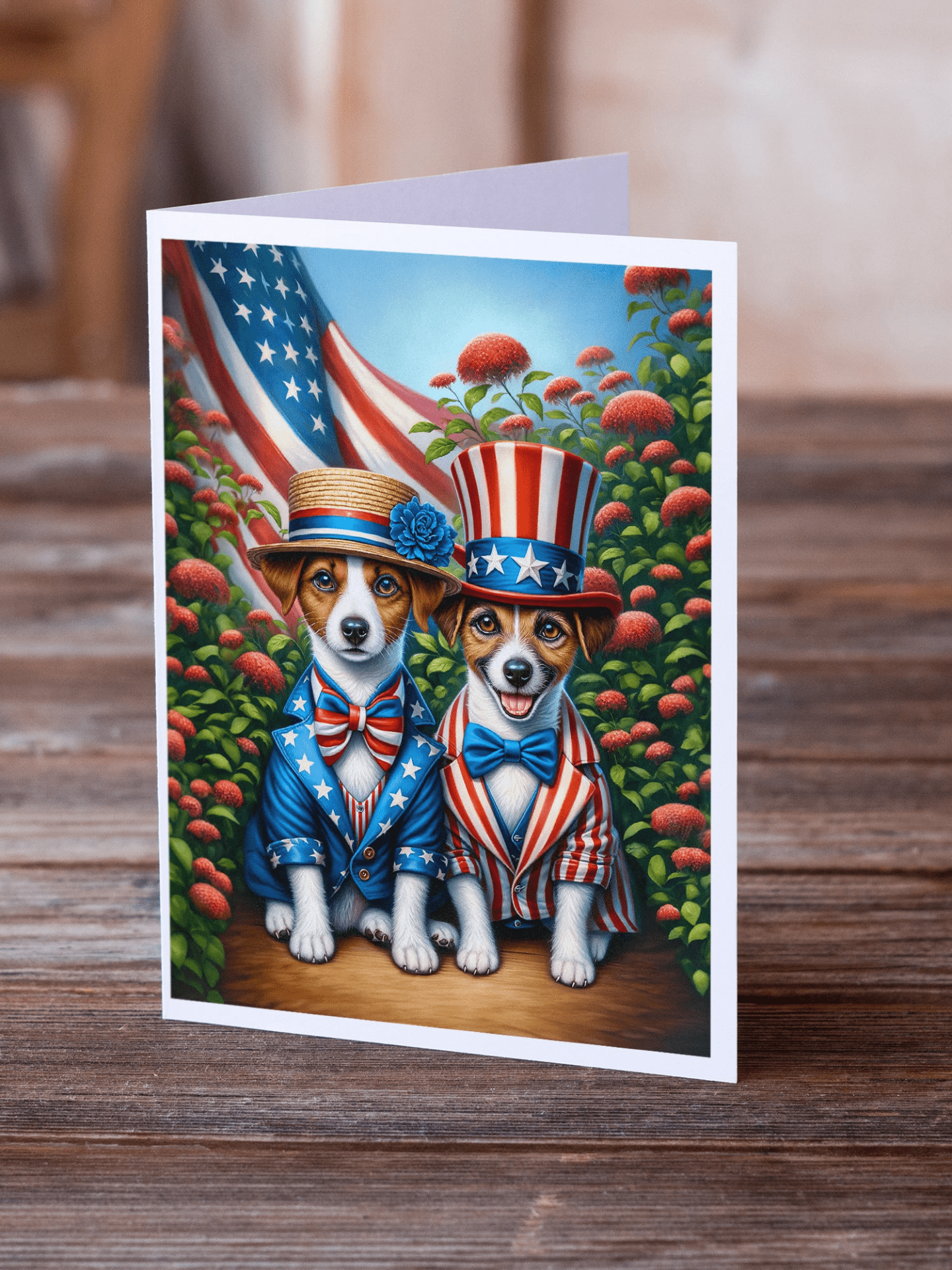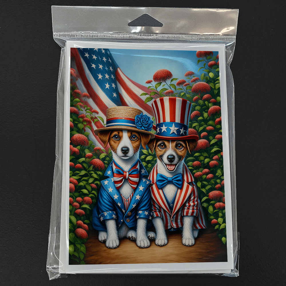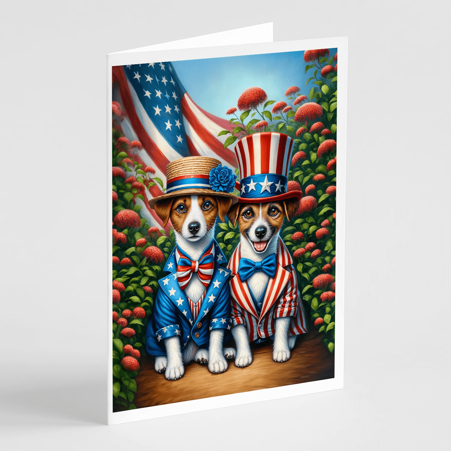 Greeting Cards Pack of 8 featuring breed specific Jack Russell Terrier artwork. Celebrate special moments with Caroline's Treasures Printed Greeting Card Pack. This pack includes eight beautifully folded 5x7 cards, accompanied by eight matching white envelopes. With blank interiors, these cards provide ample space for your personalized messages and heartfelt holiday greetings. Each card features captivating full-color artwork, meticulously printed in our facility on high-quality 80 lb cover stock or 216 GSM. The super smooth finish of the white cards enhances the visual impact of the artwork, creating a truly stunning presentation. Designed by our talented in-house artists or licensed artists, the artwork on these cards showcases their creativity and attention to detail. From vibrant illustrations to captivating designs, each card tells its own unique story. Whether it's for birthdays, anniversaries, holidays, or any special occasion, Caroline's Treasures Greeting Card Pack is the perfect way to convey your heartfelt sentiments. Share joy, love, and warm wishes with these exquisite cards and make every moment unforgettable.