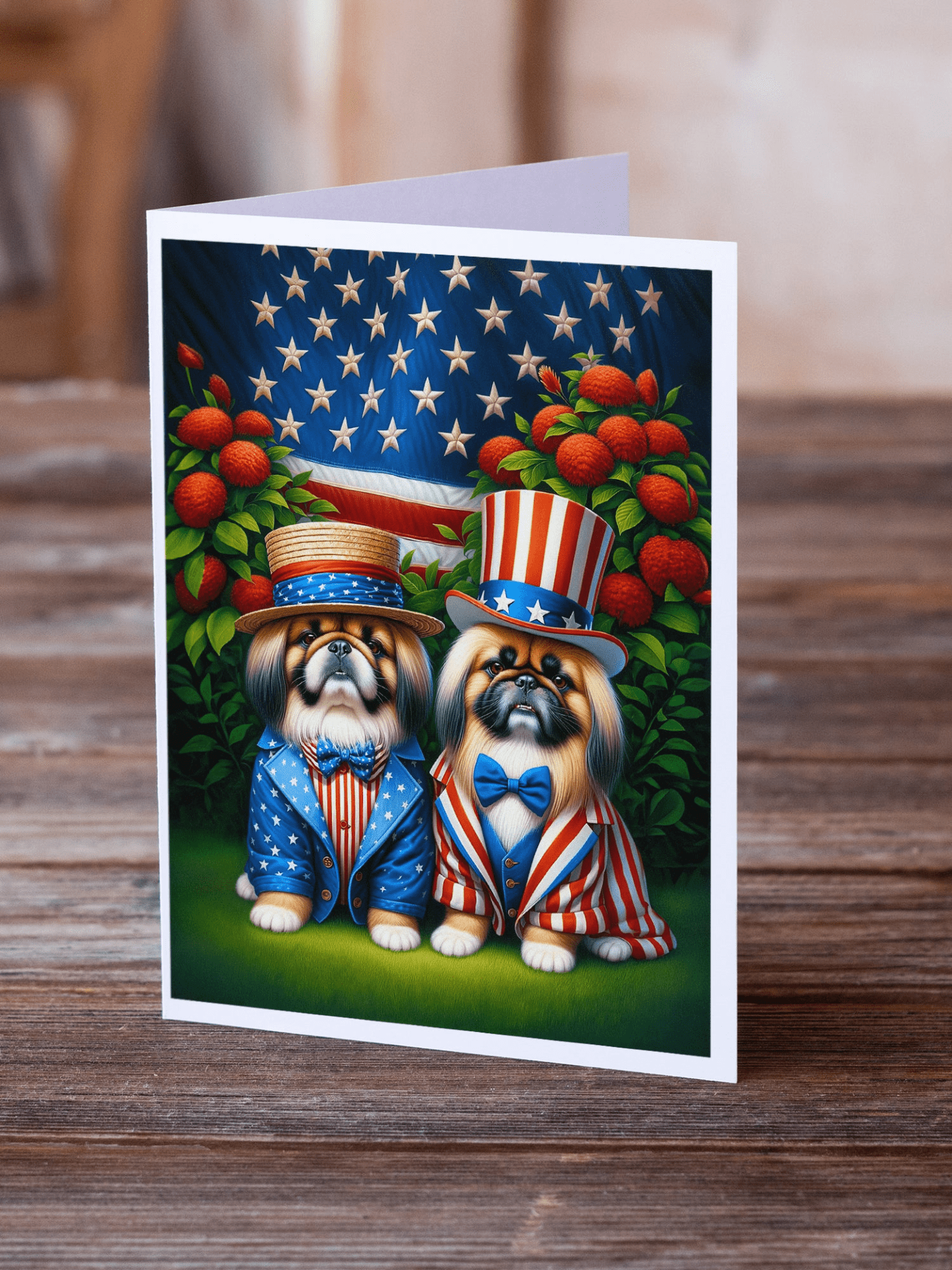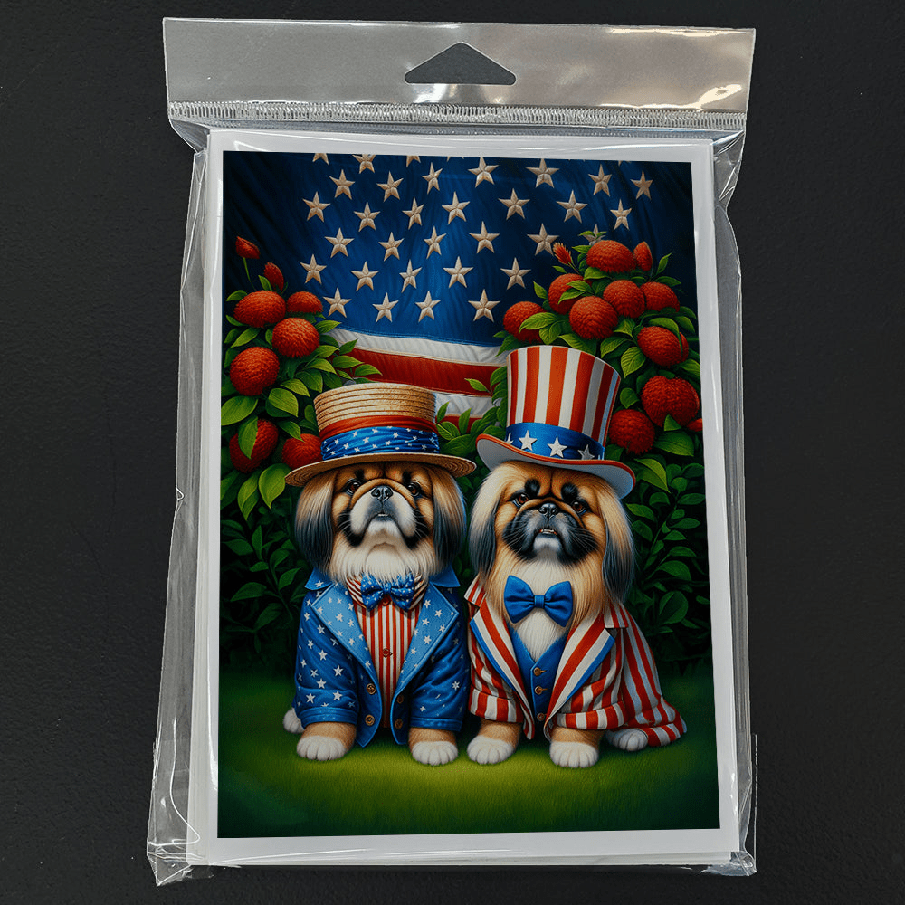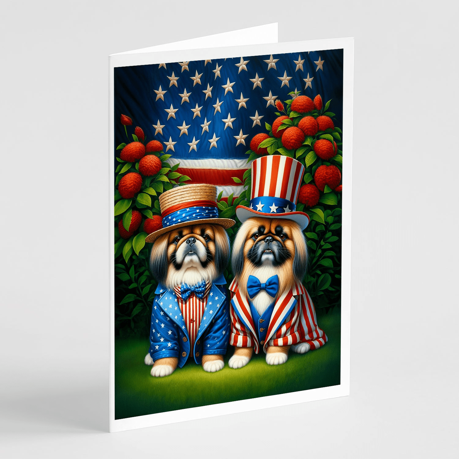 Greeting Cards Pack of 8 featuring breed specific Pekingese artwork. Celebrate special moments with Caroline's Treasures Printed Greeting Card Pack. This pack includes eight beautifully folded 5x7 cards, accompanied by eight matching white envelopes. With blank interiors, these cards provide ample space for your personalized messages and heartfelt holiday greetings. Each card features captivating full-color artwork, meticulously printed in our facility on high-quality 80 lb cover stock or 216 GSM. The super smooth finish of the white cards enhances the visual impact of the artwork, creating a truly stunning presentation. Designed by our talented in-house artists or licensed artists, the artwork on these cards showcases their creativity and attention to detail. From vibrant illustrations to captivating designs, each card tells its own unique story. Whether it's for birthdays, anniversaries, holidays, or any special occasion, Caroline's Treasures Greeting Card Pack is the perfect way to convey your heartfelt sentiments. Share joy, love, and warm wishes with these exquisite cards and make every moment unforgettable.