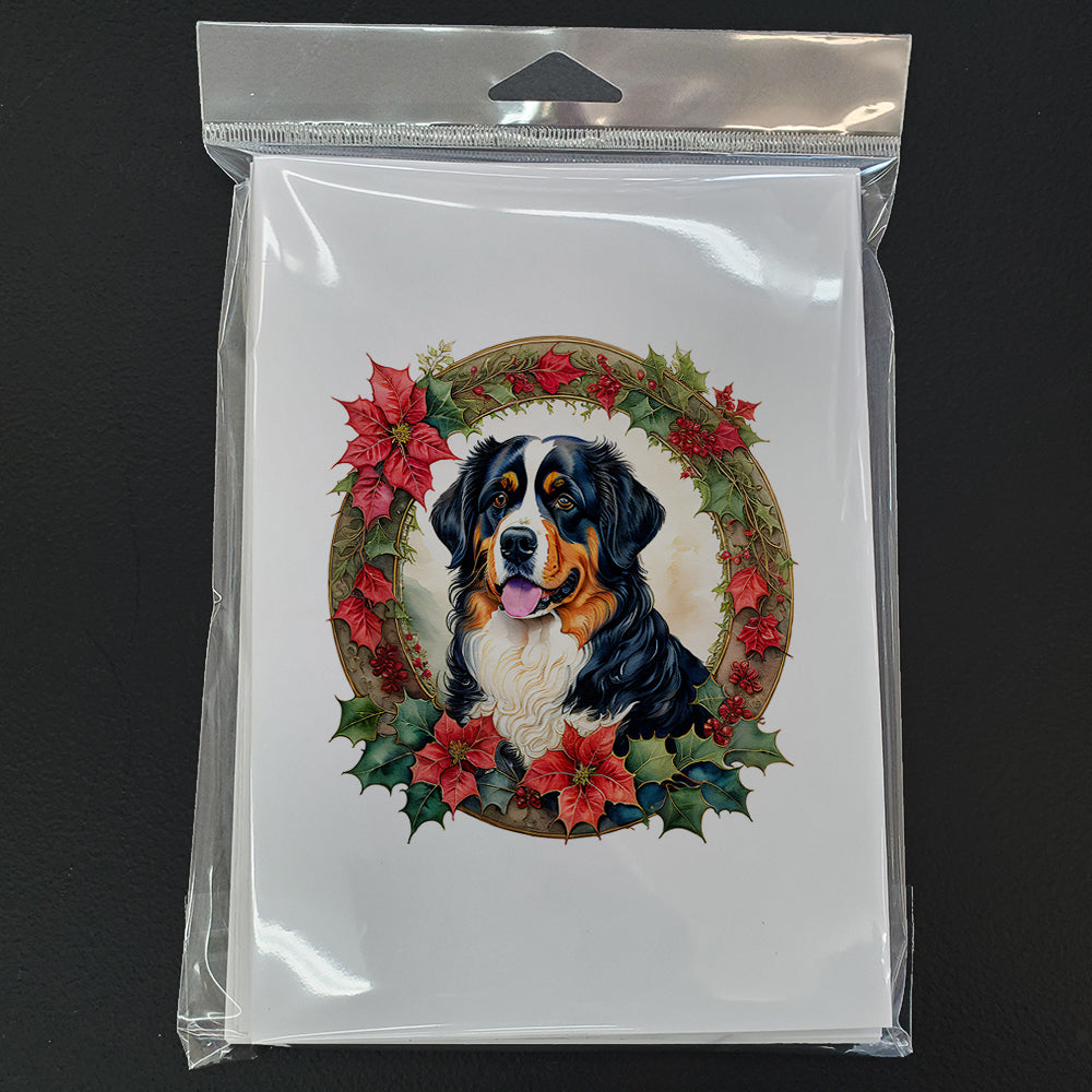 Bernese Mountain Dog Christmas Flowers Greeting Cards Pack of 8