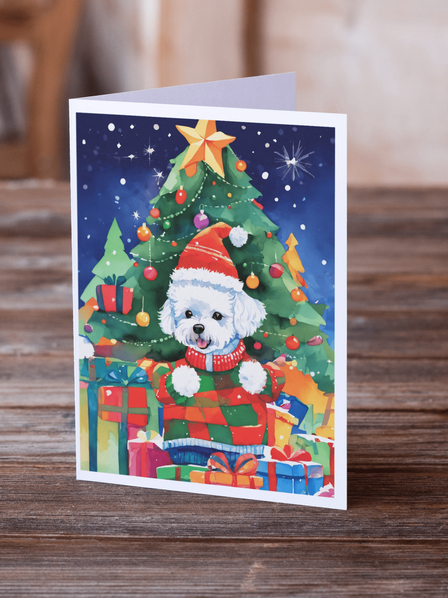 Greeting Cards Pack of 8 featuring breed specific Bichon Frise artwork. Celebrate Christmas with this Christmas . Celebrate special moments with Caroline's Treasures Printed Greeting Card Pack. This pack includes eight beautifully folded 5x7 cards, accompanied by eight matching white envelopes. With blank interiors, these cards provide ample space for your personalized messages and heartfelt holiday greetings. Each card features captivating full-color artwork, meticulously printed in our facility on high-quality 80 lb cover stock or 216 GSM. The super smooth finish of the white cards enhances the visual impact of the artwork, creating a truly stunning presentation. Designed by our talented in-house artists or licensed artists, the artwork on these cards showcases their creativity and attention to detail. From vibrant illustrations to captivating designs, each card tells its own unique story. Whether it's for birthdays, anniversaries, holidays, or any special occasion, Caroline's Treasures Greeting Card Pack is the perfect way to convey your heartfelt sentiments. Share joy, love, and warm wishes with these exquisite cards and make every moment unforgettable.