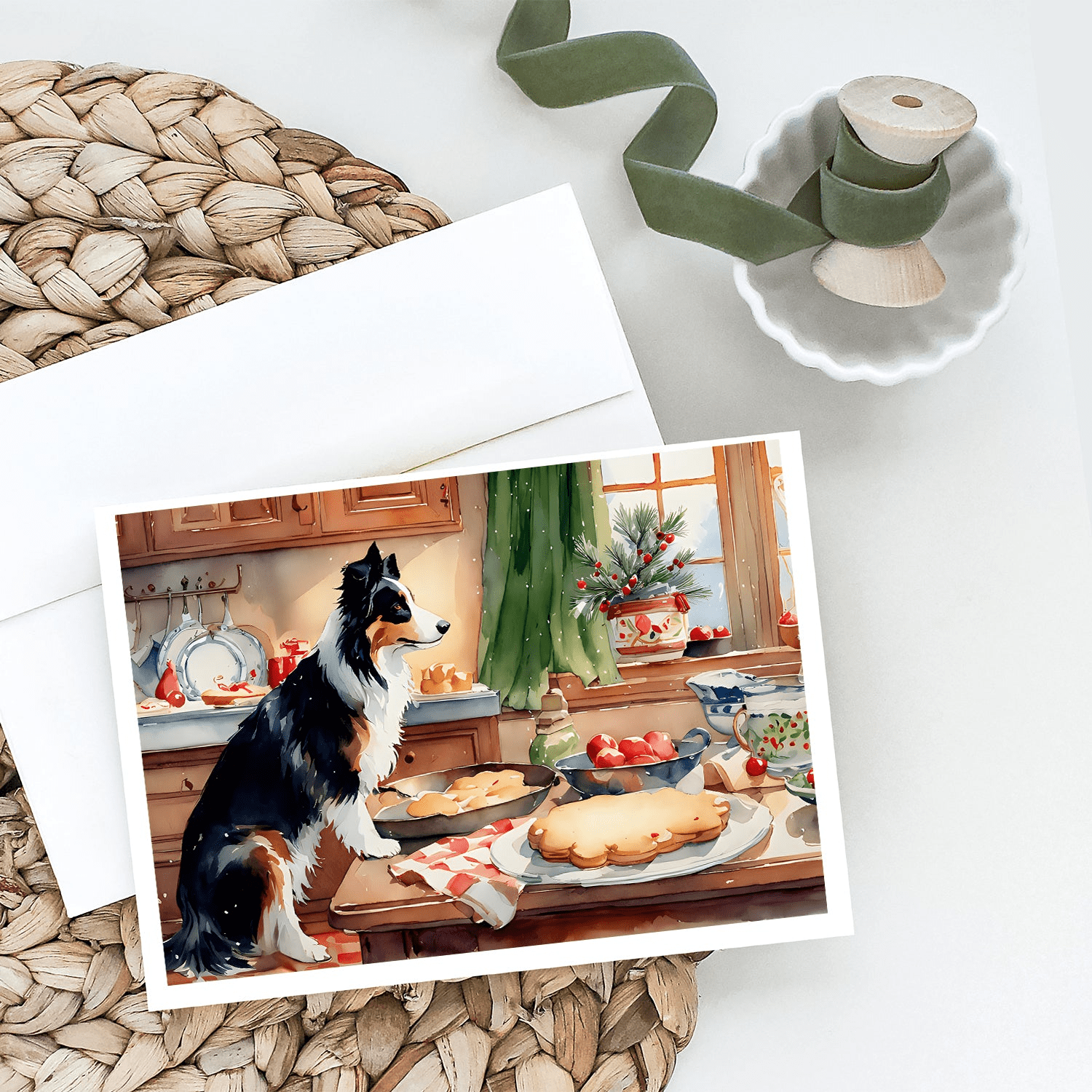 Greeting Cards Pack of 8 featuring breed specific Border Collie artwork. Celebrate Christmas with this Christmas . Celebrate special moments with Caroline's Treasures Printed Greeting Card Pack. This pack includes eight beautifully folded 5x7 cards, accompanied by eight matching white envelopes. With blank interiors, these cards provide ample space for your personalized messages and heartfelt holiday greetings. Each card features captivating full-color artwork, meticulously printed in our facility on high-quality 80 lb cover stock or 216 GSM. The super smooth finish of the white cards enhances the visual impact of the artwork, creating a truly stunning presentation. Designed by our talented in-house artists or licensed artists, the artwork on these cards showcases their creativity and attention to detail. From vibrant illustrations to captivating designs, each card tells its own unique story. Whether it's for birthdays, anniversaries, holidays, or any special occasion, Caroline's Treasures Greeting Card Pack is the perfect way to convey your heartfelt sentiments. Share joy, love, and warm wishes with these exquisite cards and make every moment unforgettable.
