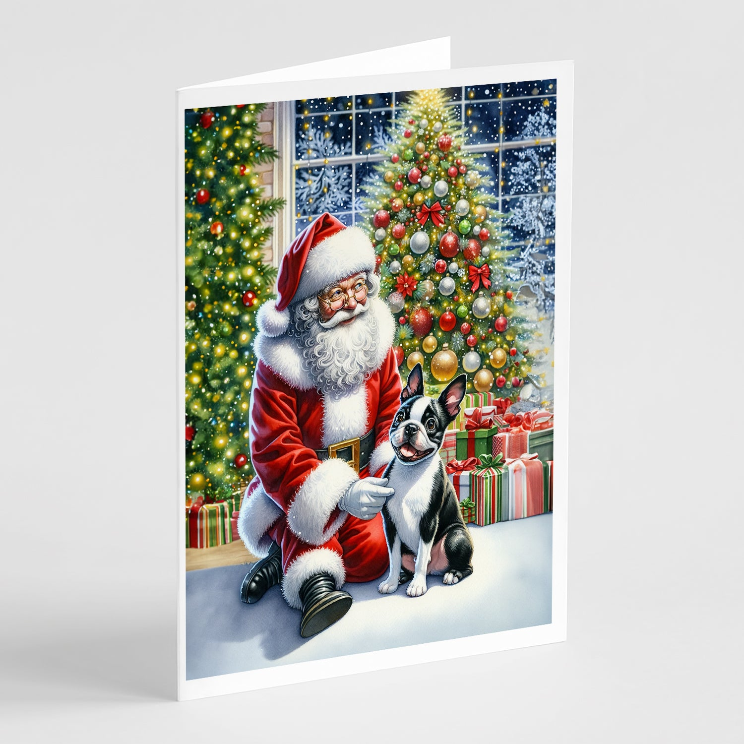 Boston Terrier and Santa Claus Greeting Cards Pack of 8