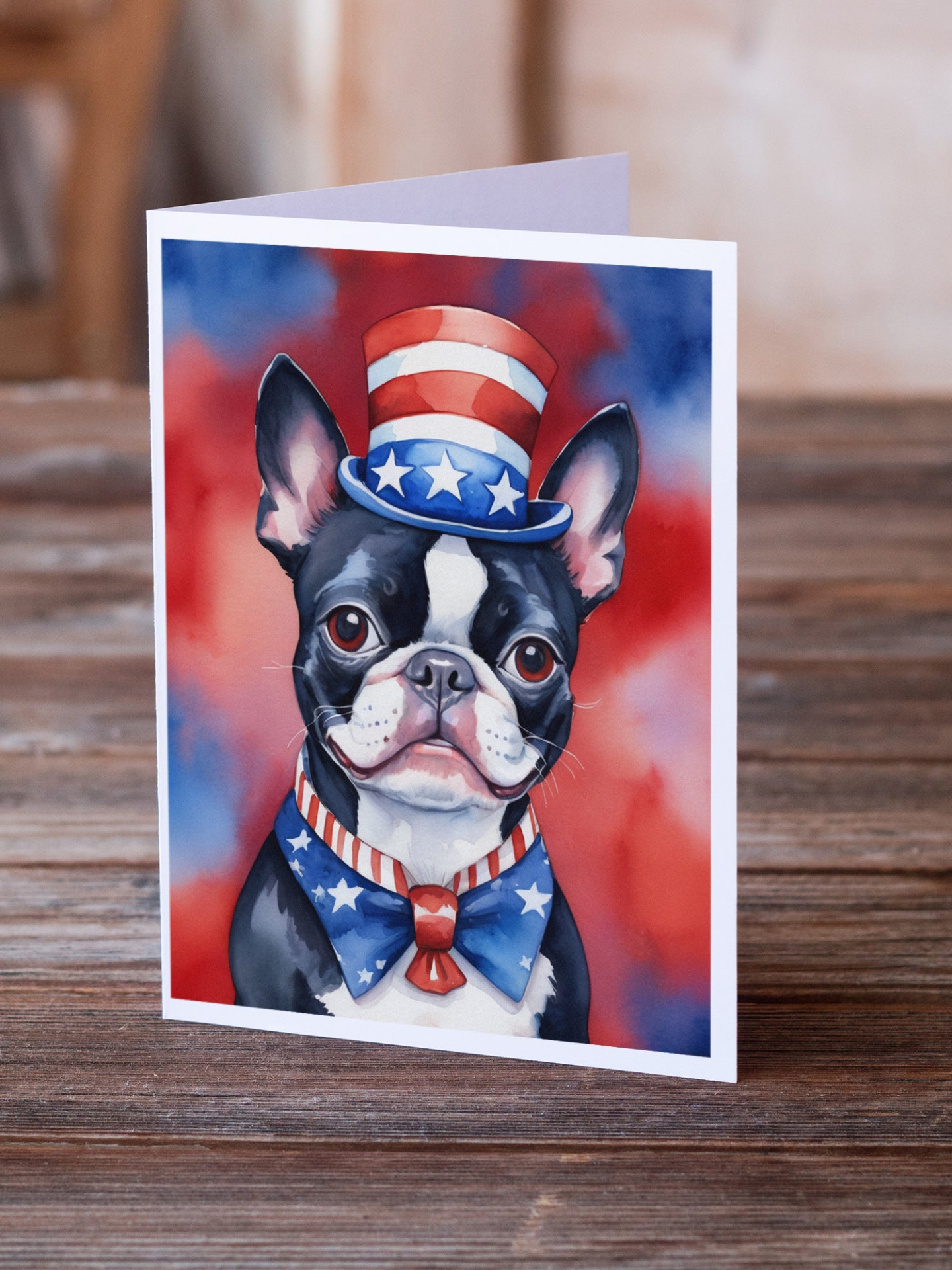 Greeting Cards Pack of 8 featuring breed specific Boston Terrier artwork. Celebrate special moments with Caroline's Treasures Printed Greeting Card Pack. This pack includes eight beautifully folded 5x7 cards, accompanied by eight matching white envelopes. With blank interiors, these cards provide ample space for your personalized messages and heartfelt holiday greetings. Each card features captivating full-color artwork, meticulously printed in our facility on high-quality 80 lb cover stock or 216 GSM. The super smooth finish of the white cards enhances the visual impact of the artwork, creating a truly stunning presentation. Designed by our talented in-house artists or licensed artists, the artwork on these cards showcases their creativity and attention to detail. From vibrant illustrations to captivating designs, each card tells its own unique story. Whether it's for birthdays, anniversaries, holidays, or any special occasion, Caroline's Treasures Greeting Card Pack is the perfect way to convey your heartfelt sentiments. Share joy, love, and warm wishes with these exquisite cards and make every moment unforgettable.