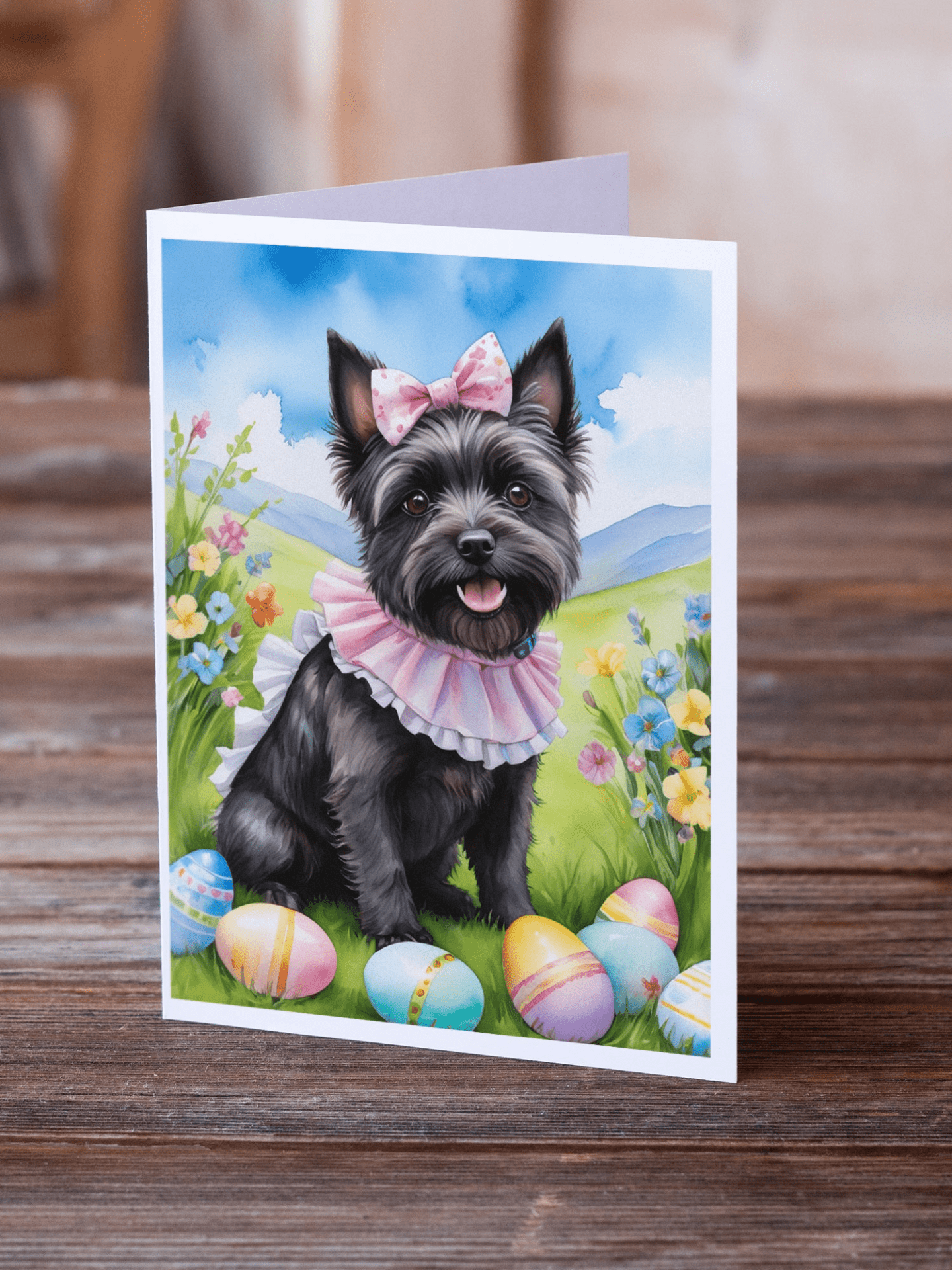 Greeting Cards Pack of 8 featuring breed specific Cairn Terrier artwork. Celebrate Easter with this Easter . Celebrate special moments with Caroline's Treasures Printed Greeting Card Pack. This pack includes eight beautifully folded 5x7 cards, accompanied by eight matching white envelopes. With blank interiors, these cards provide ample space for your personalized messages and heartfelt holiday greetings. Each card features captivating full-color artwork, meticulously printed in our facility on high-quality 80 lb cover stock or 216 GSM. The super smooth finish of the white cards enhances the visual impact of the artwork, creating a truly stunning presentation. Designed by our talented in-house artists or licensed artists, the artwork on these cards showcases their creativity and attention to detail. From vibrant illustrations to captivating designs, each card tells its own unique story. Whether it's for birthdays, anniversaries, holidays, or any special occasion, Caroline's Treasures Greeting Card Pack is the perfect way to convey your heartfelt sentiments. Share joy, love, and warm wishes with these exquisite cards and make every moment unforgettable.