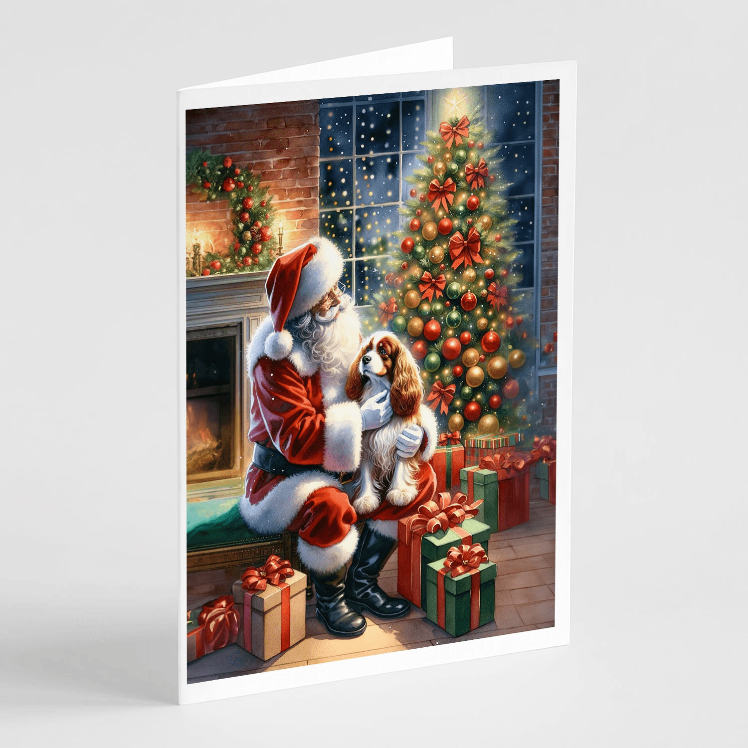 Greeting Cards Pack of 8 featuring breed specific Cavalier King Charles Spaniel artwork. Celebrate Christmas with this Christmas . Celebrate special moments with Caroline's Treasures Printed Greeting Card Pack. This pack includes eight beautifully folded 5x7 cards, accompanied by eight matching white envelopes. With blank interiors, these cards provide ample space for your personalized messages and heartfelt holiday greetings. Each card features captivating full-color artwork, meticulously printed in our facility on high-quality 80 lb cover stock or 216 GSM. The super smooth finish of the white cards enhances the visual impact of the artwork, creating a truly stunning presentation. Designed by our talented in-house artists or licensed artists, the artwork on these cards showcases their creativity and attention to detail. From vibrant illustrations to captivating designs, each card tells its own unique story. Whether it's for birthdays, anniversaries, holidays, or any special occasion, Caroline's Treasures Greeting Card Pack is the perfect way to convey your heartfelt sentiments. Share joy, love, and warm wishes with these exquisite cards and make every moment unforgettable.