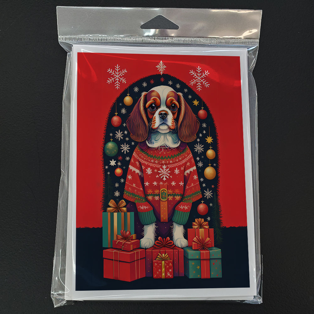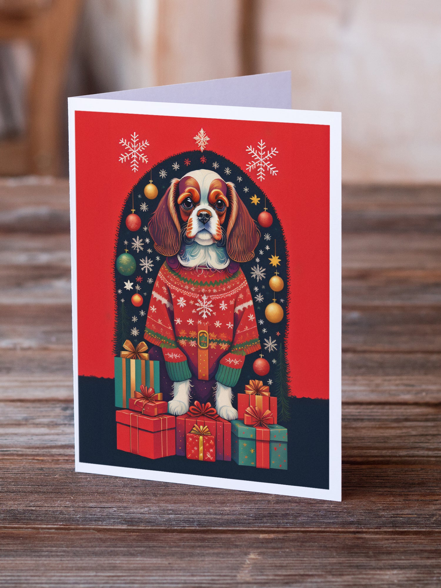Greeting Cards Pack of 8 featuring breed specific Cavalier Spaniel artwork. Celebrate Christmas with this Christmas . Celebrate special moments with Caroline's Treasures Printed Greeting Card Pack. This pack includes eight beautifully folded 5x7 cards, accompanied by eight matching white envelopes. With blank interiors, these cards provide ample space for your personalized messages and heartfelt holiday greetings. Each card features captivating full-color artwork, meticulously printed in our facility on high-quality 80 lb cover stock or 216 GSM. The super smooth finish of the white cards enhances the visual impact of the artwork, creating a truly stunning presentation. Designed by our talented in-house artists or licensed artists, the artwork on these cards showcases their creativity and attention to detail. From vibrant illustrations to captivating designs, each card tells its own unique story. Whether it's for birthdays, anniversaries, holidays, or any special occasion, Caroline's Treasures Greeting Card Pack is the perfect way to convey your heartfelt sentiments. Share joy, love, and warm wishes with these exquisite cards and make every moment unforgettable.