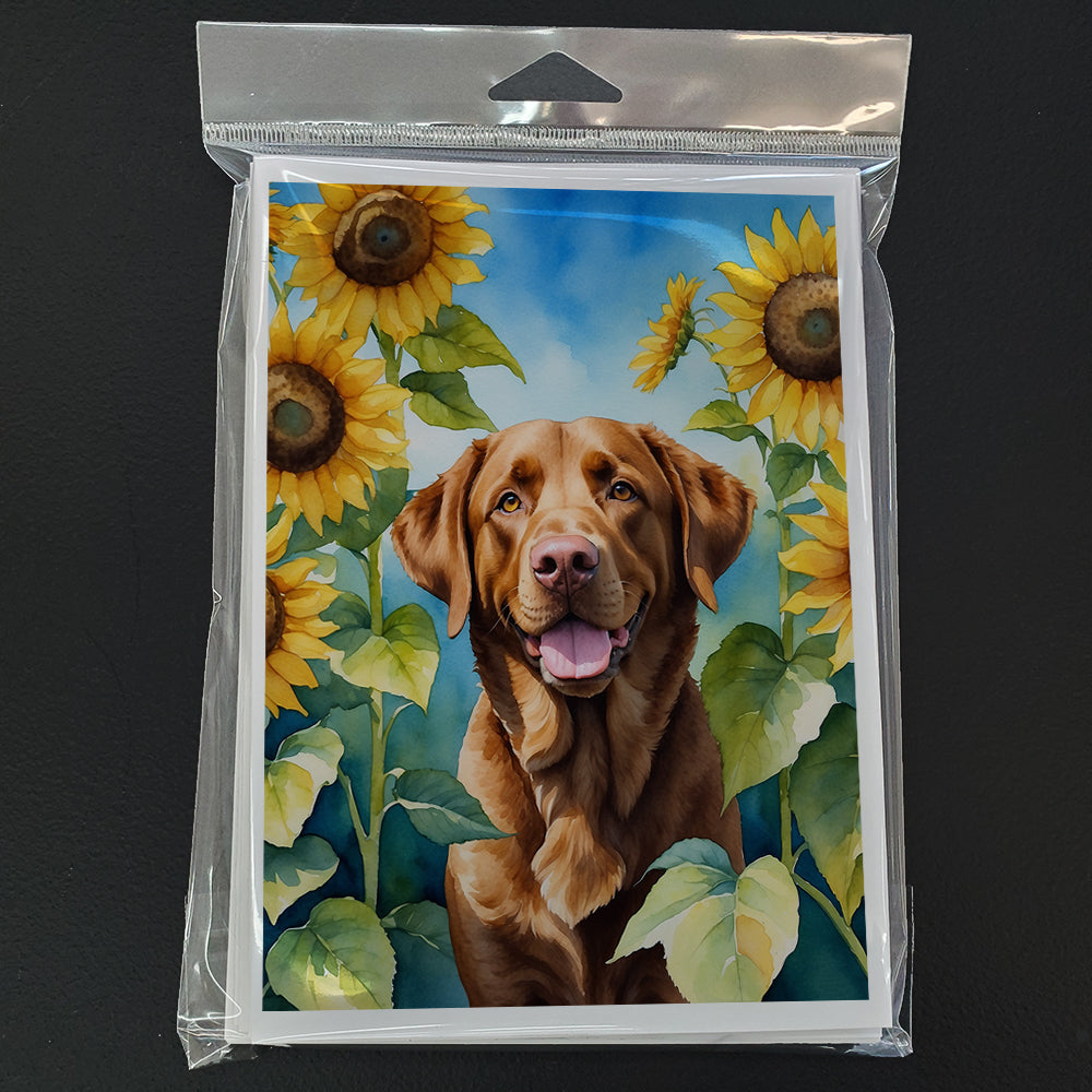 Chesapeake Bay Retriever in Sunflowers Greeting Cards Pack of 8