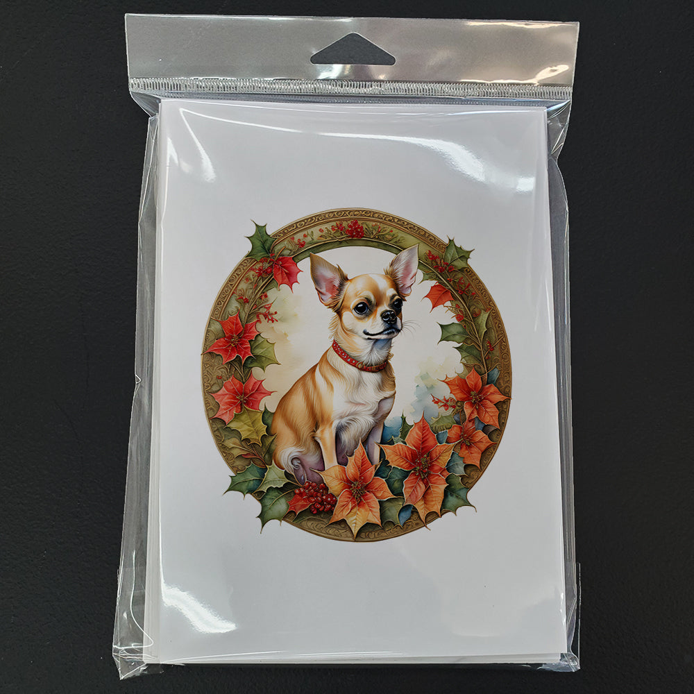Greeting Cards Pack of 8 featuring breed specific Chihuahua artwork. Celebrate Christmas with this Christmas . Celebrate special moments with Caroline's Treasures Printed Greeting Card Pack. This pack includes eight beautifully folded 5x7 cards, accompanied by eight matching white envelopes. With blank interiors, these cards provide ample space for your personalized messages and heartfelt holiday greetings. Each card features captivating full-color artwork, meticulously printed in our facility on high-quality 80 lb cover stock or 216 GSM. The super smooth finish of the white cards enhances the visual impact of the artwork, creating a truly stunning presentation. Designed by our talented in-house artists or licensed artists, the artwork on these cards showcases their creativity and attention to detail. From vibrant illustrations to captivating designs, each card tells its own unique story. Whether it's for birthdays, anniversaries, holidays, or any special occasion, Caroline's Treasures Greeting Card Pack is the perfect way to convey your heartfelt sentiments. Share joy, love, and warm wishes with these exquisite cards and make every moment unforgettable.