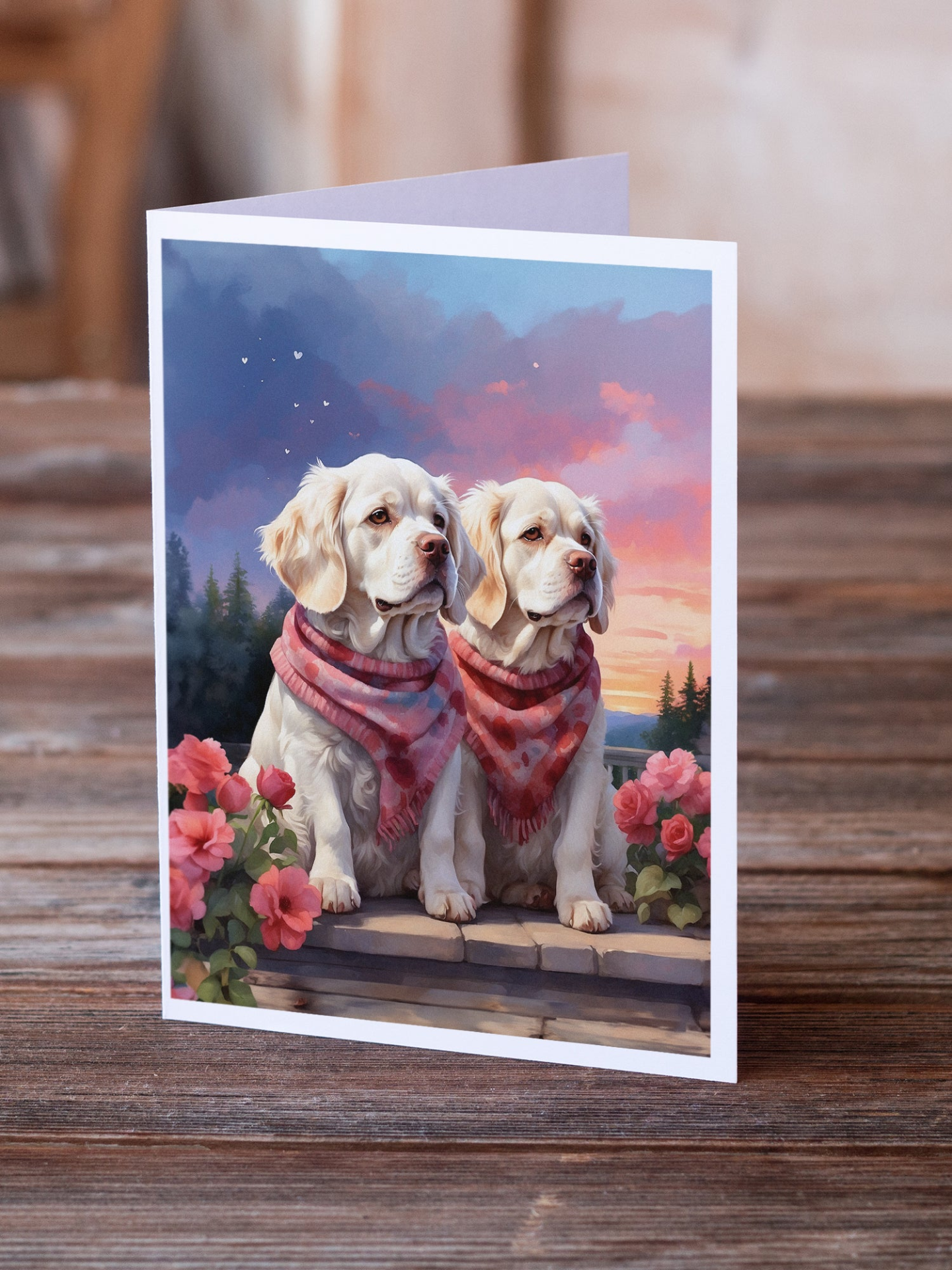 Greeting Cards Pack of 8 featuring breed specific Clumber Spaniel artwork. Celebrate Valentine's Day with this Valentine's Day . Celebrate special moments with Caroline's Treasures Printed Greeting Card Pack. This pack includes eight beautifully folded 5x7 cards, accompanied by eight matching white envelopes. With blank interiors, these cards provide ample space for your personalized messages and heartfelt holiday greetings. Each card features captivating full-color artwork, meticulously printed in our facility on high-quality 80 lb cover stock or 216 GSM. The super smooth finish of the white cards enhances the visual impact of the artwork, creating a truly stunning presentation. Designed by our talented in-house artists or licensed artists, the artwork on these cards showcases their creativity and attention to detail. From vibrant illustrations to captivating designs, each card tells its own unique story. Whether it's for birthdays, anniversaries, holidays, or any special occasion, Caroline's Treasures Greeting Card Pack is the perfect way to convey your heartfelt sentiments. Share joy, love, and warm wishes with these exquisite cards and make every moment unforgettable.