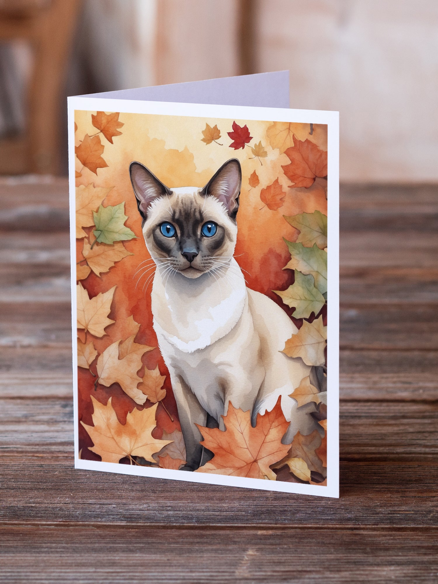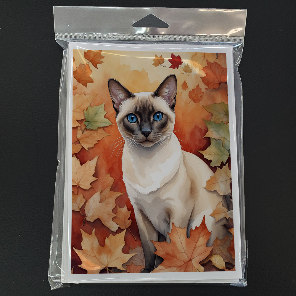 Colorpoint Shorthair Cat in Fall Leaves Greeting Cards Pack of 8