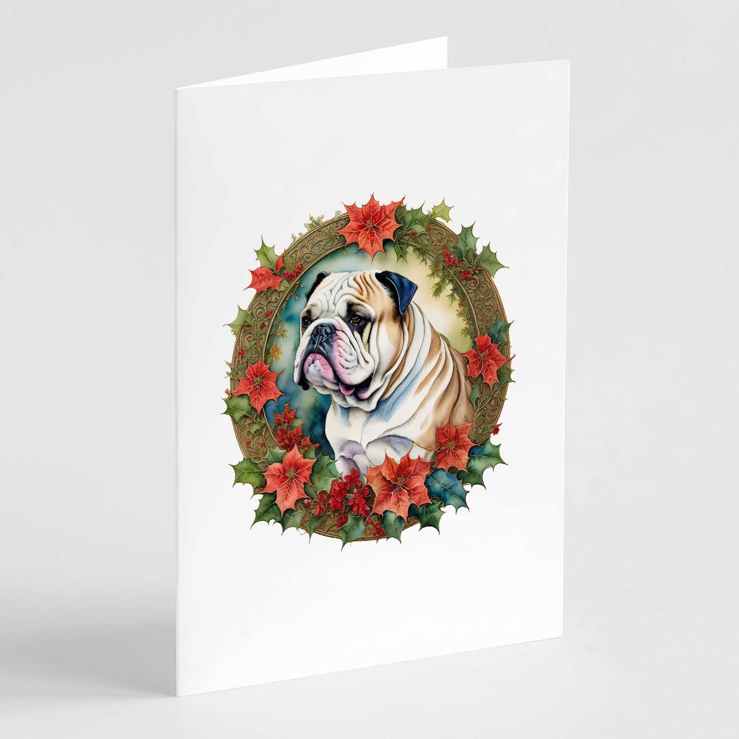 Greeting Cards Pack of 8 featuring breed specific English Bulldog artwork. Celebrate Christmas with this Christmas . Celebrate special moments with Caroline's Treasures Printed Greeting Card Pack. This pack includes eight beautifully folded 5x7 cards, accompanied by eight matching white envelopes. With blank interiors, these cards provide ample space for your personalized messages and heartfelt holiday greetings. Each card features captivating full-color artwork, meticulously printed in our facility on high-quality 80 lb cover stock or 216 GSM. The super smooth finish of the white cards enhances the visual impact of the artwork, creating a truly stunning presentation. Designed by our talented in-house artists or licensed artists, the artwork on these cards showcases their creativity and attention to detail. From vibrant illustrations to captivating designs, each card tells its own unique story. Whether it's for birthdays, anniversaries, holidays, or any special occasion, Caroline's Treasures Greeting Card Pack is the perfect way to convey your heartfelt sentiments. Share joy, love, and warm wishes with these exquisite cards and make every moment unforgettable.