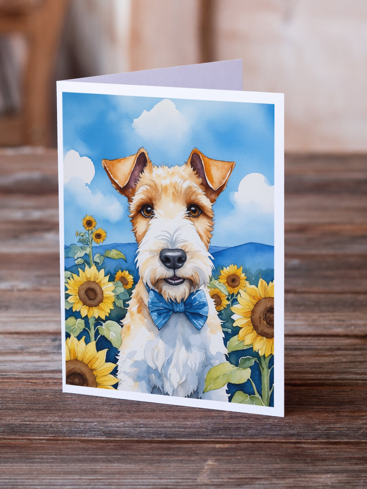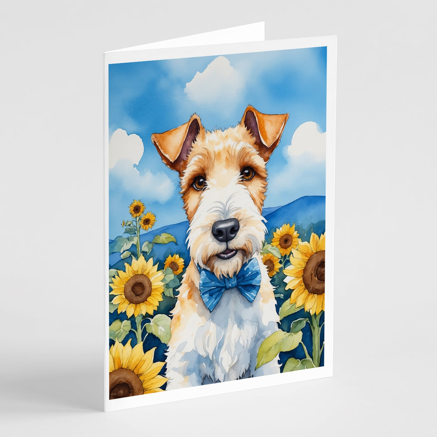 Fox Terrier in Sunflowers Greeting Cards Pack of 8