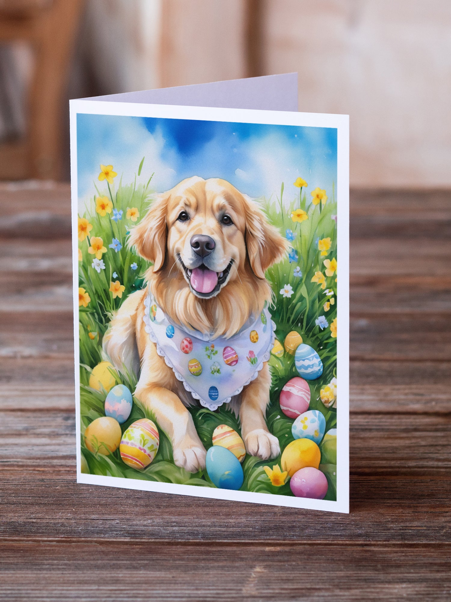 Greeting Cards Pack of 8 featuring breed specific Golden Retriever artwork. Celebrate Easter with this Easter . Celebrate special moments with Caroline's Treasures Printed Greeting Card Pack. This pack includes eight beautifully folded 5x7 cards, accompanied by eight matching white envelopes. With blank interiors, these cards provide ample space for your personalized messages and heartfelt holiday greetings. Each card features captivating full-color artwork, meticulously printed in our facility on high-quality 80 lb cover stock or 216 GSM. The super smooth finish of the white cards enhances the visual impact of the artwork, creating a truly stunning presentation. Designed by our talented in-house artists or licensed artists, the artwork on these cards showcases their creativity and attention to detail. From vibrant illustrations to captivating designs, each card tells its own unique story. Whether it's for birthdays, anniversaries, holidays, or any special occasion, Caroline's Treasures Greeting Card Pack is the perfect way to convey your heartfelt sentiments. Share joy, love, and warm wishes with these exquisite cards and make every moment unforgettable.