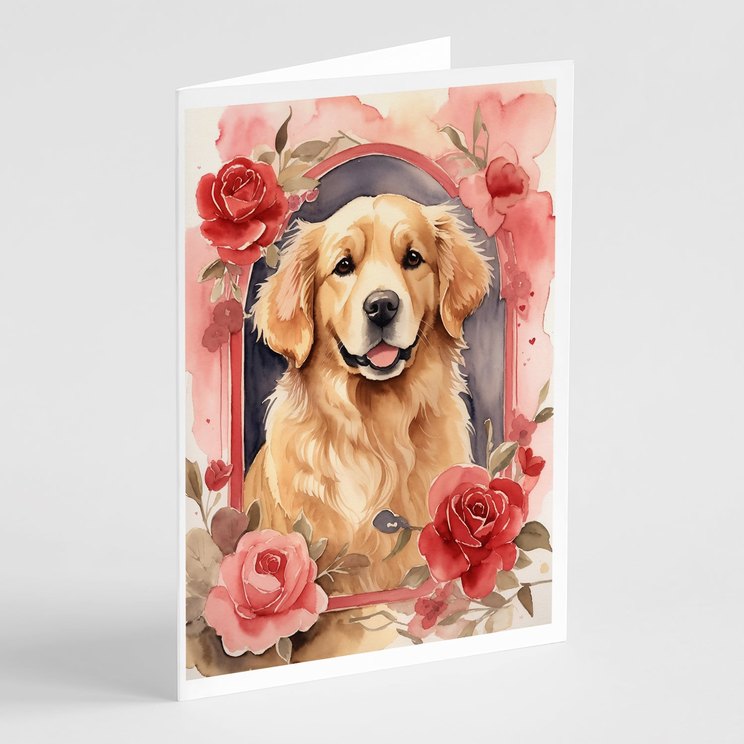 Golden Retriever Valentine Roses Greeting Cards Pack of 8
