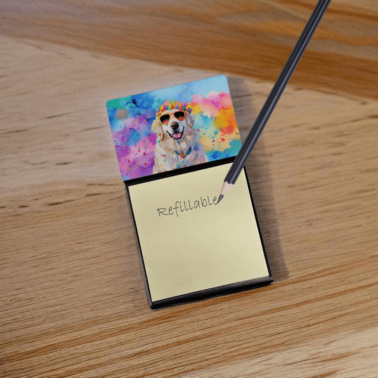Sticky Note Holder featuring breed specific Great Pyrenees artwork. Add a touch of creativity and flair to your desk with the Decorative Sticky Note Holder from Caroline's Treasures. This uniquely designed sticky note dispenser will not only keep your notes in one place but also add an artistic element to your workspace. The top of the holder features beautiful artwork that is sure to catch the eye. Crafted for convenience, this sticky note holder comes with a small pad of 3-inch x 3-inch sticky notes at the bottom. The holder is designed for easy refilling; simply remove the last sheet of a new sticky note pad and stick it onto the board. This feature ensures you will always have sticky notes at your disposal. This Sticky Note Holder makes a perfect gift. Be it for your colleagues at work, your Facebook friends, or even your dog groomer or hairdresser, this versatile product fits the bill. You can use it for making grocery lists, leaving notes for loved ones, or for jotting down important reminders. The bottom board is rigid and can be magnetized by adding a business card size magnet to the back (sold separately). This makes it even more versatile, allowing you to place it on a refrigerator or any other magnetic surface. With this Sticky Note Holder, you're not only organizing your notes, but also personalizing your space.