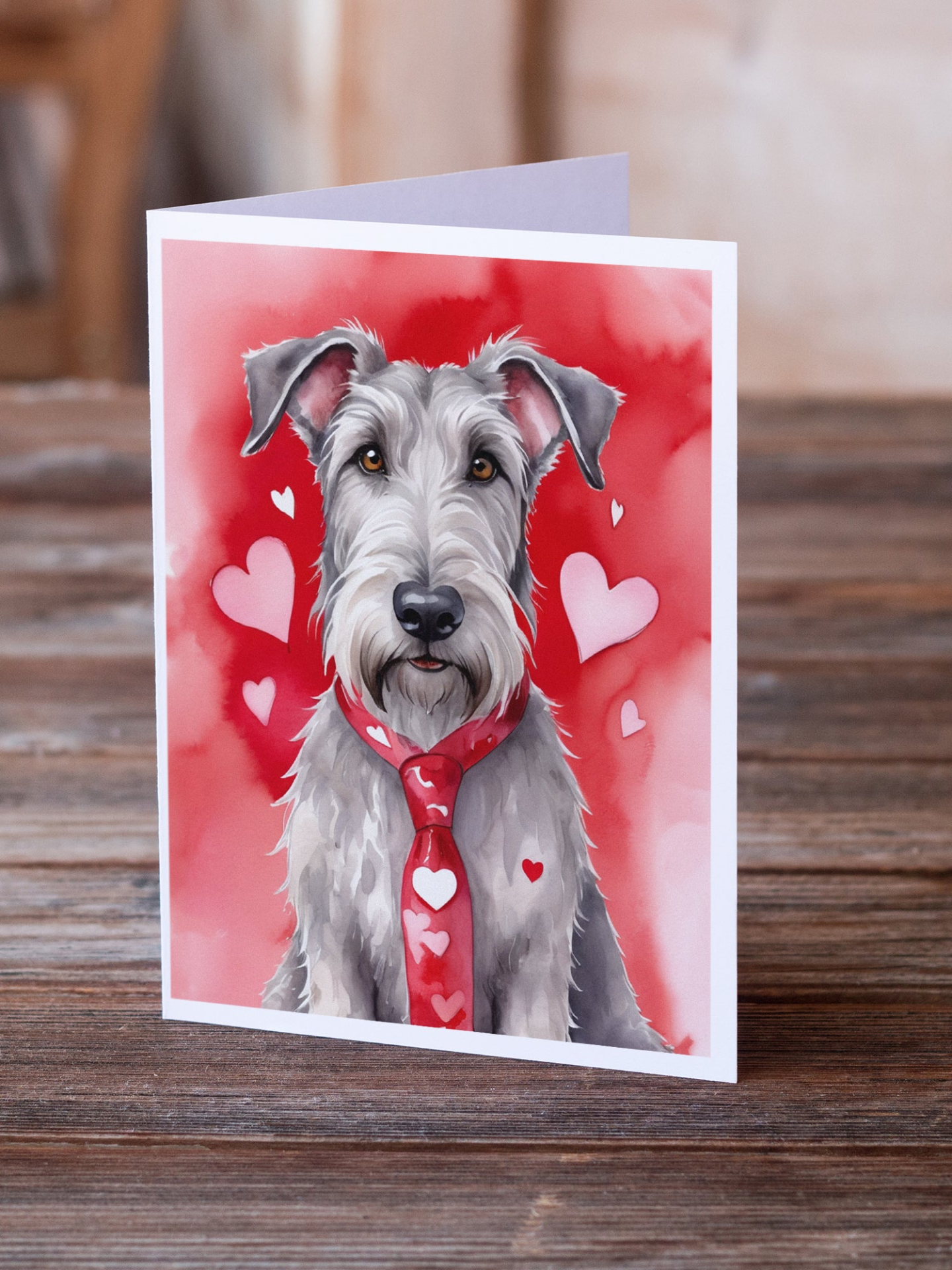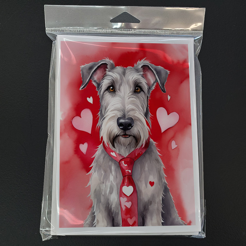 Greeting Cards Pack of 8 featuring breed specific Irish Wolfhound artwork. Celebrate Valentine's Day with this Valentine's Day . Celebrate special moments with Caroline's Treasures Printed Greeting Card Pack. This pack includes eight beautifully folded 5x7 cards, accompanied by eight matching white envelopes. With blank interiors, these cards provide ample space for your personalized messages and heartfelt holiday greetings. Each card features captivating full-color artwork, meticulously printed in our facility on high-quality 80 lb cover stock or 216 GSM. The super smooth finish of the white cards enhances the visual impact of the artwork, creating a truly stunning presentation. Designed by our talented in-house artists or licensed artists, the artwork on these cards showcases their creativity and attention to detail. From vibrant illustrations to captivating designs, each card tells its own unique story. Whether it's for birthdays, anniversaries, holidays, or any special occasion, Caroline's Treasures Greeting Card Pack is the perfect way to convey your heartfelt sentiments. Share joy, love, and warm wishes with these exquisite cards and make every moment unforgettable.
