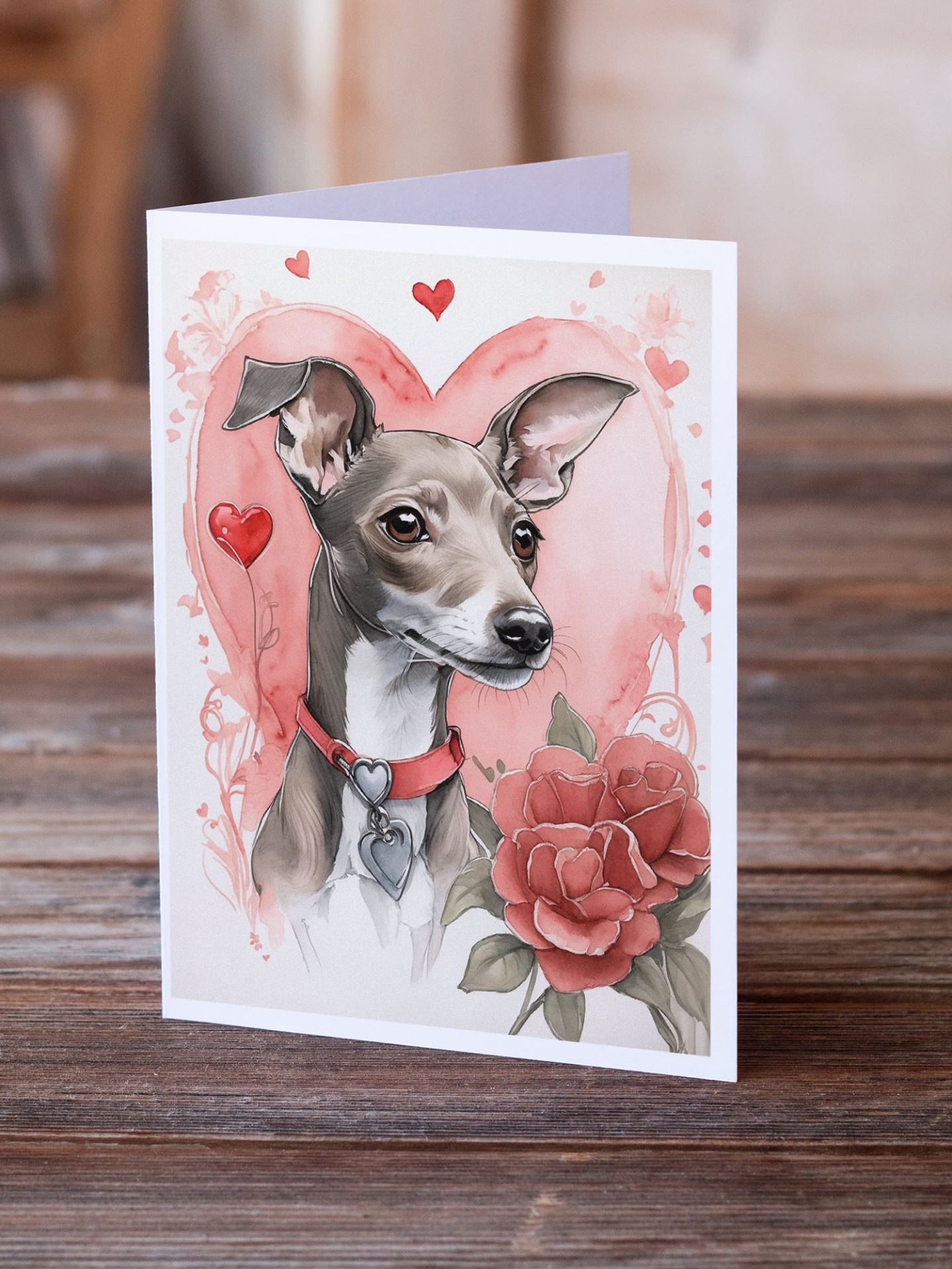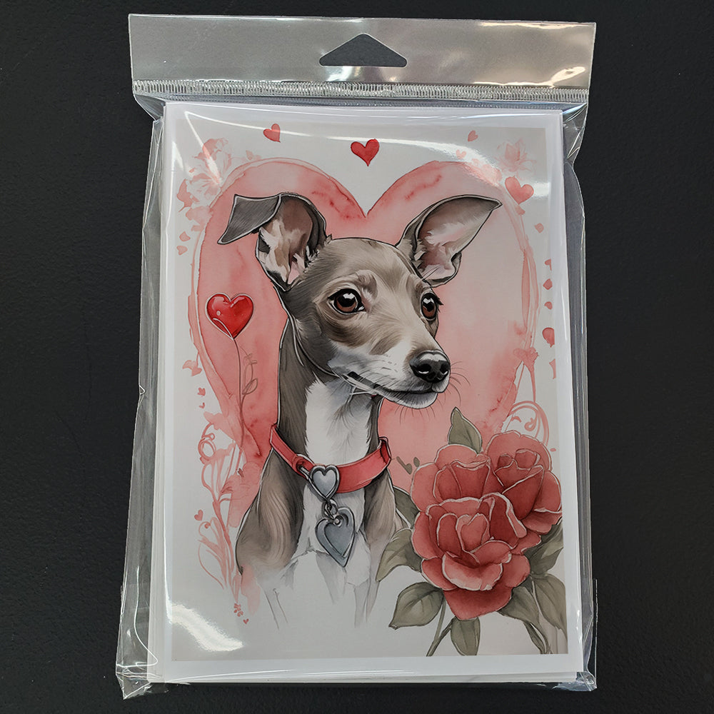 Italian Greyhound Valentine Roses Greeting Cards Pack of 8