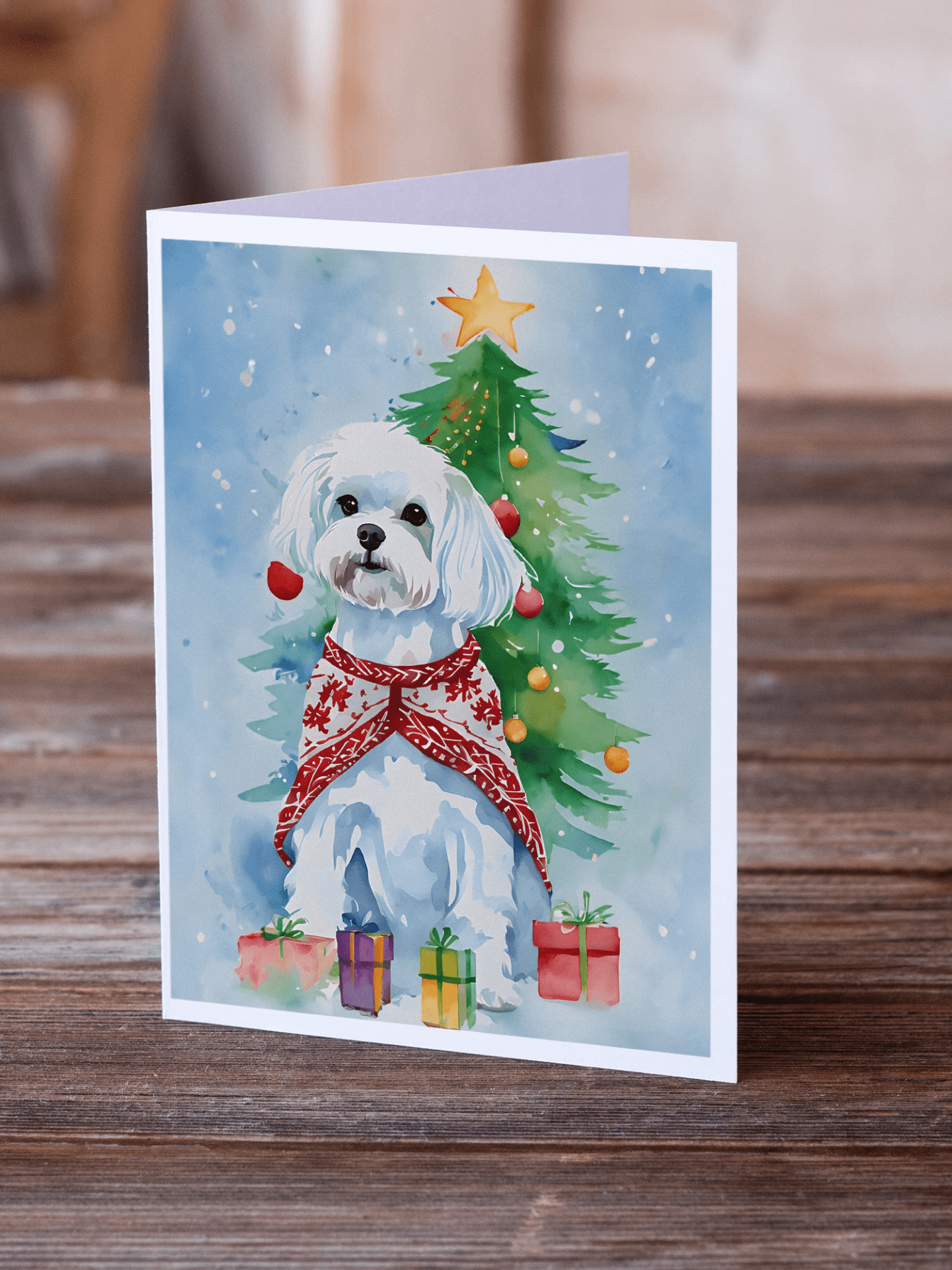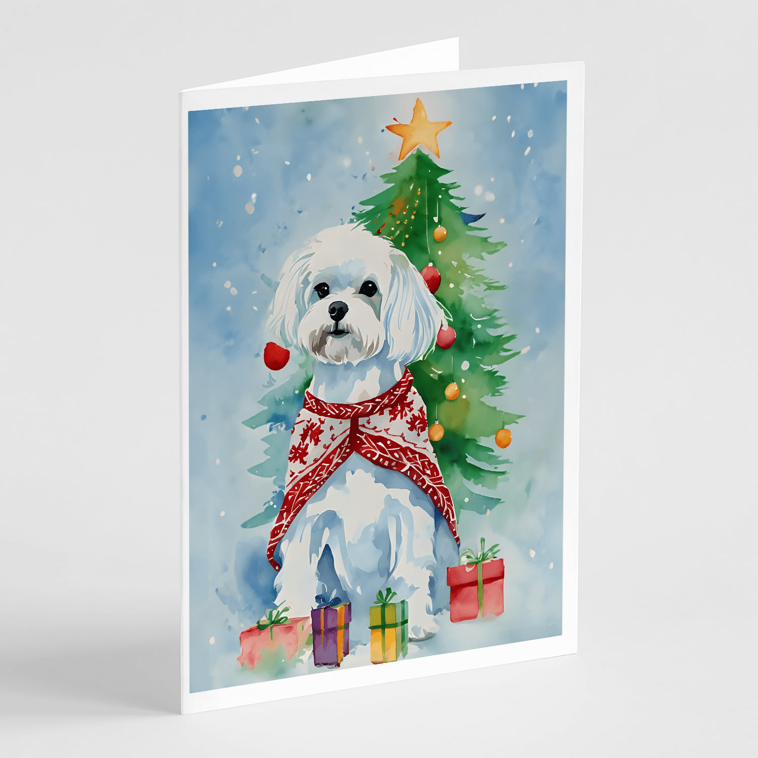 Greeting Cards Pack of 8 featuring breed specific Maltese artwork. Celebrate Christmas with this Christmas . Celebrate special moments with Caroline's Treasures Printed Greeting Card Pack. This pack includes eight beautifully folded 5x7 cards, accompanied by eight matching white envelopes. With blank interiors, these cards provide ample space for your personalized messages and heartfelt holiday greetings. Each card features captivating full-color artwork, meticulously printed in our facility on high-quality 80 lb cover stock or 216 GSM. The super smooth finish of the white cards enhances the visual impact of the artwork, creating a truly stunning presentation. Designed by our talented in-house artists or licensed artists, the artwork on these cards showcases their creativity and attention to detail. From vibrant illustrations to captivating designs, each card tells its own unique story. Whether it's for birthdays, anniversaries, holidays, or any special occasion, Caroline's Treasures Greeting Card Pack is the perfect way to convey your heartfelt sentiments. Share joy, love, and warm wishes with these exquisite cards and make every moment unforgettable.