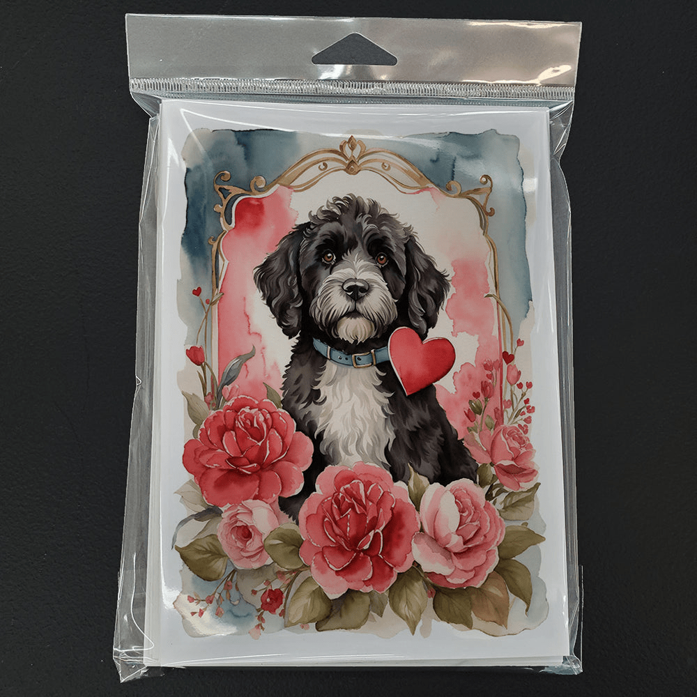 Greeting Cards Pack of 8 featuring breed specific Portuguese Water Dog artwork. Celebrate Valentine's Day with this Valentine's Day . Celebrate special moments with Caroline's Treasures Printed Greeting Card Pack. This pack includes eight beautifully folded 5x7 cards, accompanied by eight matching white envelopes. With blank interiors, these cards provide ample space for your personalized messages and heartfelt holiday greetings. Each card features captivating full-color artwork, meticulously printed in our facility on high-quality 80 lb cover stock or 216 GSM. The super smooth finish of the white cards enhances the visual impact of the artwork, creating a truly stunning presentation. Designed by our talented in-house artists or licensed artists, the artwork on these cards showcases their creativity and attention to detail. From vibrant illustrations to captivating designs, each card tells its own unique story. Whether it's for birthdays, anniversaries, holidays, or any special occasion, Caroline's Treasures Greeting Card Pack is the perfect way to convey your heartfelt sentiments. Share joy, love, and warm wishes with these exquisite cards and make every moment unforgettable.