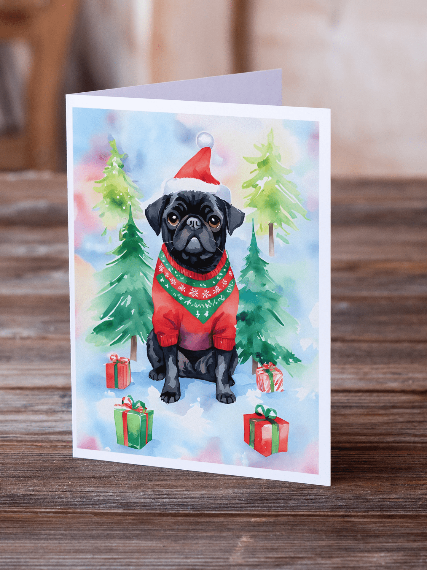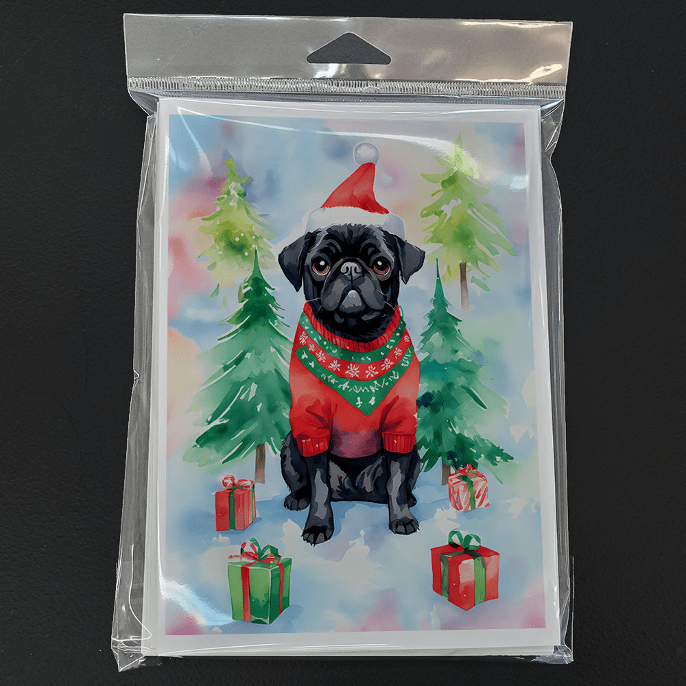 Greeting Cards Pack of 8 featuring breed specific Pug artwork. Celebrate Christmas with this Christmas . Celebrate special moments with Caroline's Treasures Printed Greeting Card Pack. This pack includes eight beautifully folded 5x7 cards, accompanied by eight matching white envelopes. With blank interiors, these cards provide ample space for your personalized messages and heartfelt holiday greetings. Each card features captivating full-color artwork, meticulously printed in our facility on high-quality 80 lb cover stock or 216 GSM. The super smooth finish of the white cards enhances the visual impact of the artwork, creating a truly stunning presentation. Designed by our talented in-house artists or licensed artists, the artwork on these cards showcases their creativity and attention to detail. From vibrant illustrations to captivating designs, each card tells its own unique story. Whether it's for birthdays, anniversaries, holidays, or any special occasion, Caroline's Treasures Greeting Card Pack is the perfect way to convey your heartfelt sentiments. Share joy, love, and warm wishes with these exquisite cards and make every moment unforgettable.