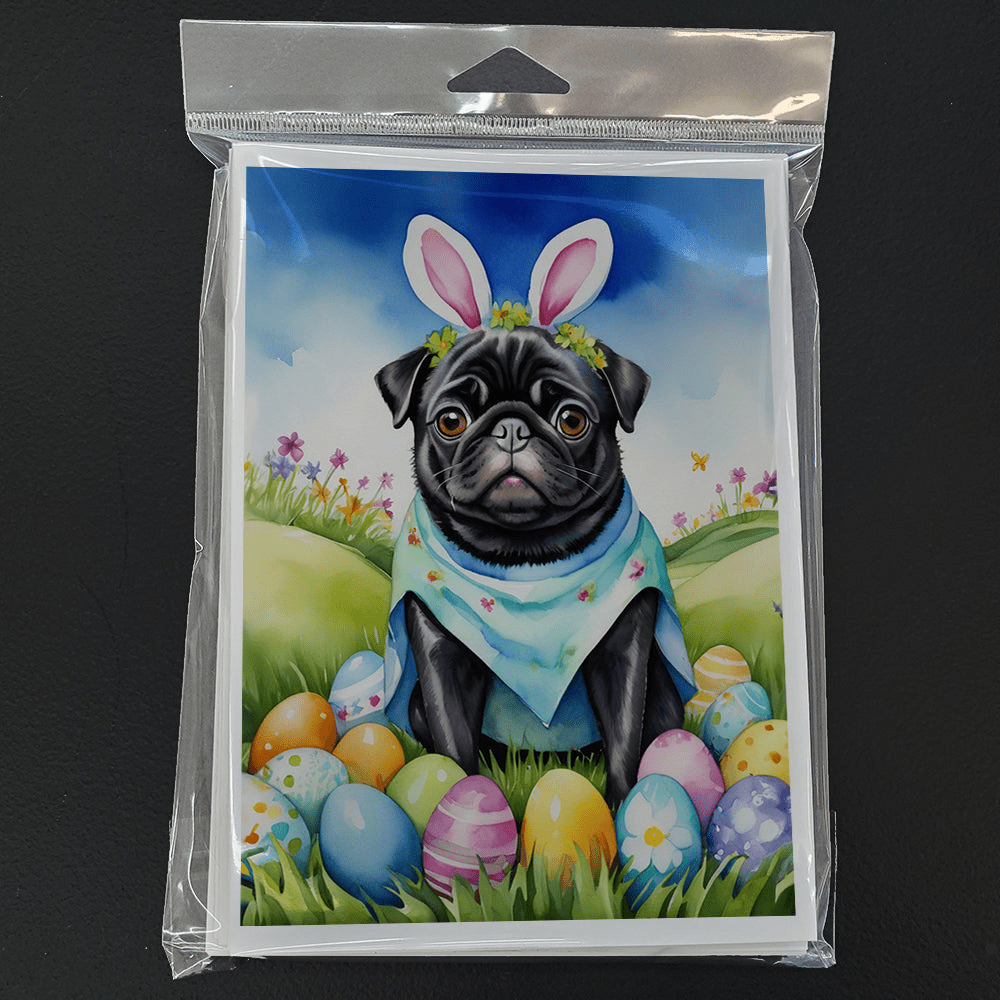 Greeting Cards Pack of 8 featuring breed specific Pug artwork. Celebrate Easter with this Easter . Celebrate special moments with Caroline's Treasures Printed Greeting Card Pack. This pack includes eight beautifully folded 5x7 cards, accompanied by eight matching white envelopes. With blank interiors, these cards provide ample space for your personalized messages and heartfelt holiday greetings. Each card features captivating full-color artwork, meticulously printed in our facility on high-quality 80 lb cover stock or 216 GSM. The super smooth finish of the white cards enhances the visual impact of the artwork, creating a truly stunning presentation. Designed by our talented in-house artists or licensed artists, the artwork on these cards showcases their creativity and attention to detail. From vibrant illustrations to captivating designs, each card tells its own unique story. Whether it's for birthdays, anniversaries, holidays, or any special occasion, Caroline's Treasures Greeting Card Pack is the perfect way to convey your heartfelt sentiments. Share joy, love, and warm wishes with these exquisite cards and make every moment unforgettable.
