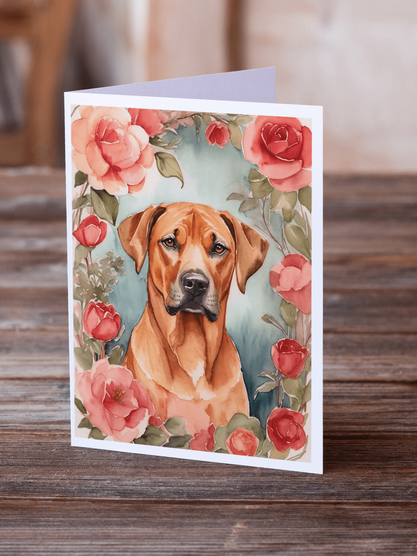 Greeting Cards Pack of 8 featuring breed specific Rhodesian Ridgeback artwork. Celebrate Valentine's Day with this Valentine's Day . Celebrate special moments with Caroline's Treasures Printed Greeting Card Pack. This pack includes eight beautifully folded 5x7 cards, accompanied by eight matching white envelopes. With blank interiors, these cards provide ample space for your personalized messages and heartfelt holiday greetings. Each card features captivating full-color artwork, meticulously printed in our facility on high-quality 80 lb cover stock or 216 GSM. The super smooth finish of the white cards enhances the visual impact of the artwork, creating a truly stunning presentation. Designed by our talented in-house artists or licensed artists, the artwork on these cards showcases their creativity and attention to detail. From vibrant illustrations to captivating designs, each card tells its own unique story. Whether it's for birthdays, anniversaries, holidays, or any special occasion, Caroline's Treasures Greeting Card Pack is the perfect way to convey your heartfelt sentiments. Share joy, love, and warm wishes with these exquisite cards and make every moment unforgettable.