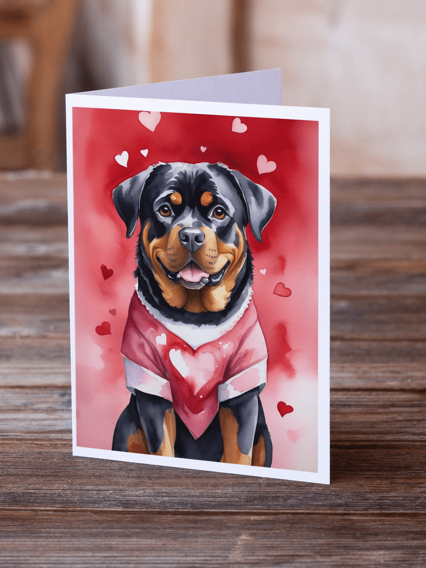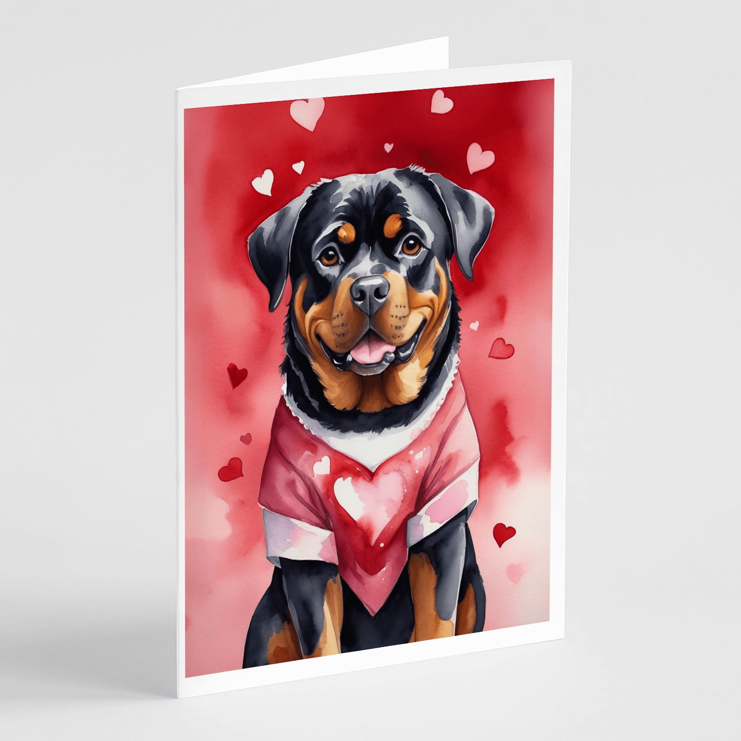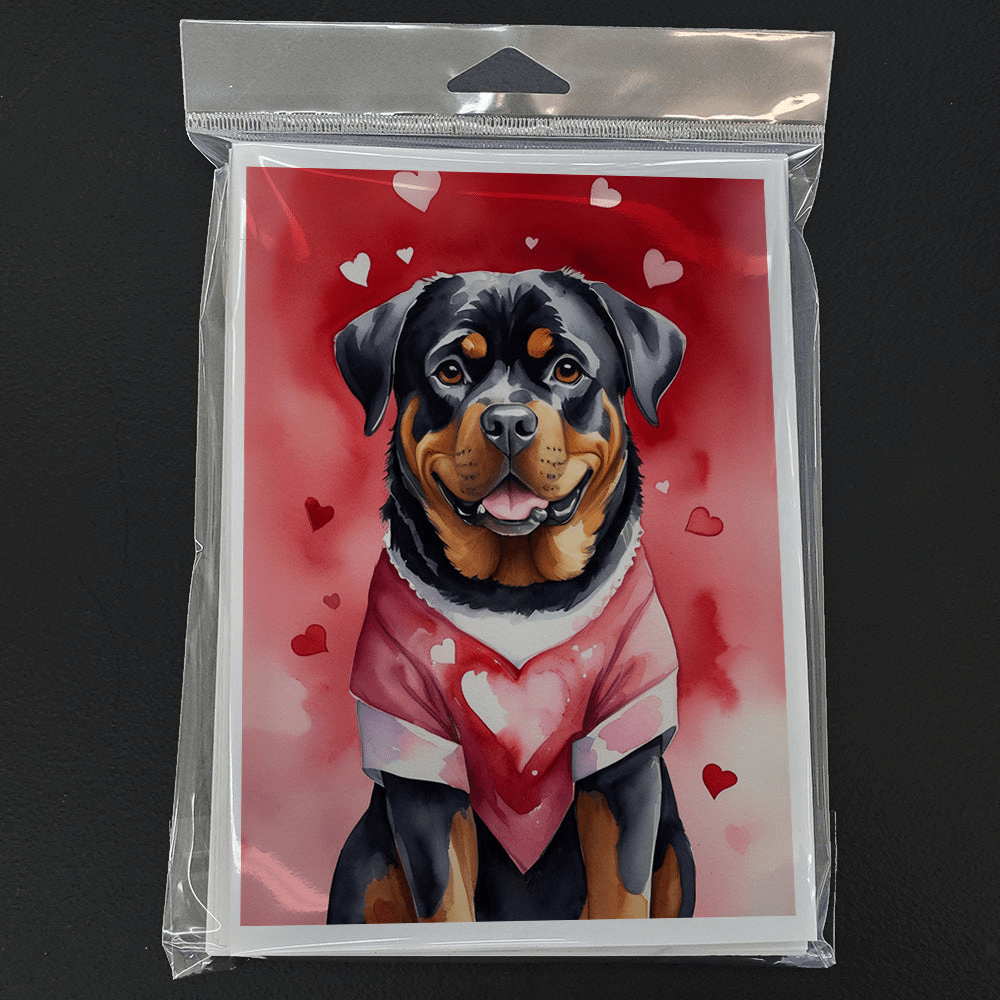Greeting Cards Pack of 8 featuring breed specific Rottweiler artwork. Celebrate Valentine's Day with this Valentine's Day . Celebrate special moments with Caroline's Treasures Printed Greeting Card Pack. This pack includes eight beautifully folded 5x7 cards, accompanied by eight matching white envelopes. With blank interiors, these cards provide ample space for your personalized messages and heartfelt holiday greetings. Each card features captivating full-color artwork, meticulously printed in our facility on high-quality 80 lb cover stock or 216 GSM. The super smooth finish of the white cards enhances the visual impact of the artwork, creating a truly stunning presentation. Designed by our talented in-house artists or licensed artists, the artwork on these cards showcases their creativity and attention to detail. From vibrant illustrations to captivating designs, each card tells its own unique story. Whether it's for birthdays, anniversaries, holidays, or any special occasion, Caroline's Treasures Greeting Card Pack is the perfect way to convey your heartfelt sentiments. Share joy, love, and warm wishes with these exquisite cards and make every moment unforgettable.