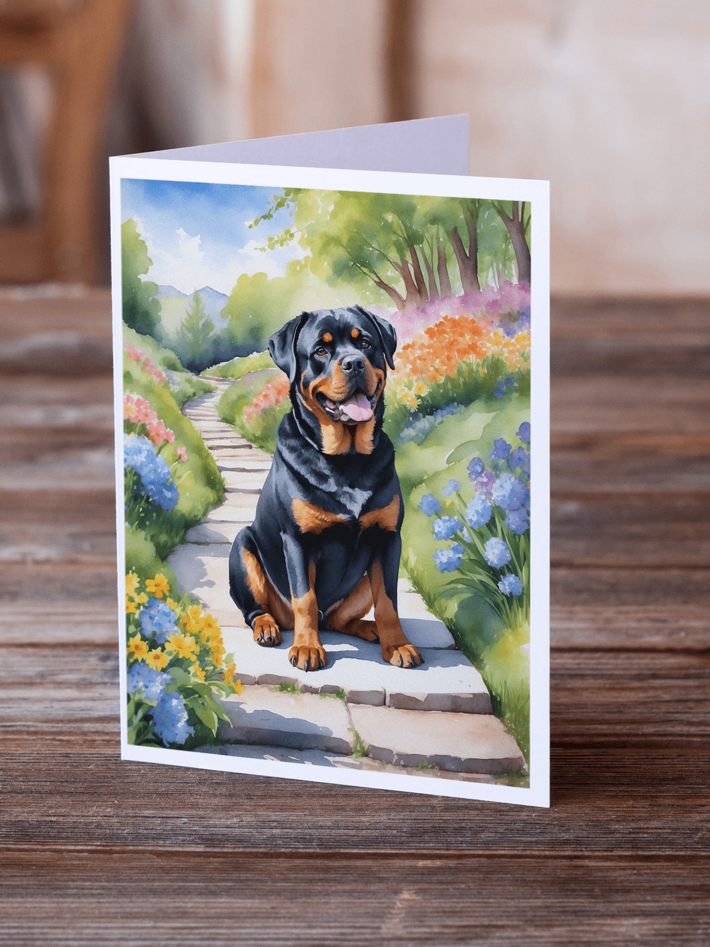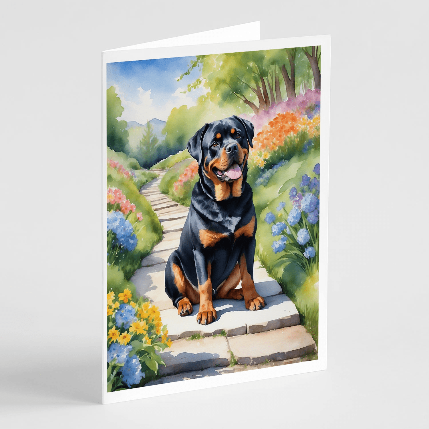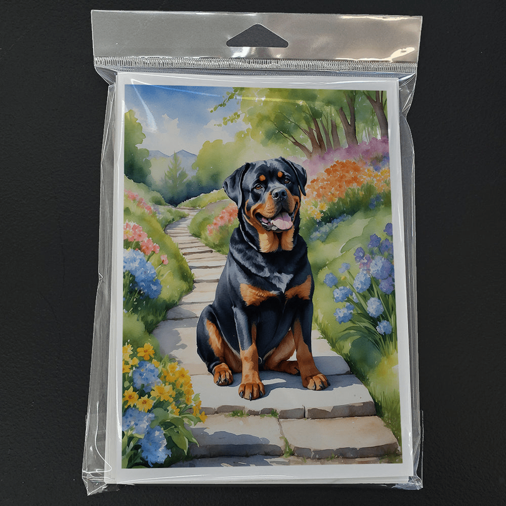 Greeting Cards Pack of 8 featuring breed specific Rottweiler artwork. Celebrate special moments with Caroline's Treasures Printed Greeting Card Pack. This pack includes eight beautifully folded 5x7 cards, accompanied by eight matching white envelopes. With blank interiors, these cards provide ample space for your personalized messages and heartfelt holiday greetings. Each card features captivating full-color artwork, meticulously printed in our facility on high-quality 80 lb cover stock or 216 GSM. The super smooth finish of the white cards enhances the visual impact of the artwork, creating a truly stunning presentation. Designed by our talented in-house artists or licensed artists, the artwork on these cards showcases their creativity and attention to detail. From vibrant illustrations to captivating designs, each card tells its own unique story. Whether it's for birthdays, anniversaries, holidays, or any special occasion, Caroline's Treasures Greeting Card Pack is the perfect way to convey your heartfelt sentiments. Share joy, love, and warm wishes with these exquisite cards and make every moment unforgettable.