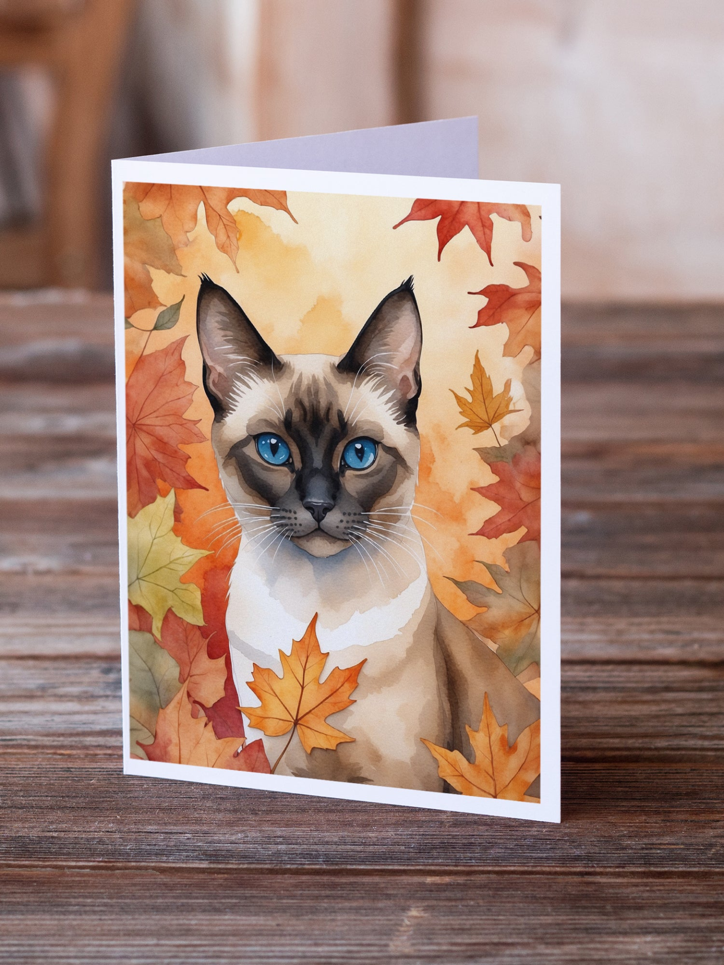 Greeting Cards Pack of 8 featuring breed specific Siamese artwork. Celebrate special moments with Caroline's Treasures Printed Greeting Card Pack. This pack includes eight beautifully folded 5x7 cards, accompanied by eight matching white envelopes. With blank interiors, these cards provide ample space for your personalized messages and heartfelt holiday greetings. Each card features captivating full-color artwork, meticulously printed in our facility on high-quality 80 lb cover stock or 216 GSM. The super smooth finish of the white cards enhances the visual impact of the artwork, creating a truly stunning presentation. Designed by our talented in-house artists or licensed artists, the artwork on these cards showcases their creativity and attention to detail. From vibrant illustrations to captivating designs, each card tells its own unique story. Whether it's for birthdays, anniversaries, holidays, or any special occasion, Caroline's Treasures Greeting Card Pack is the perfect way to convey your heartfelt sentiments. Share joy, love, and warm wishes with these exquisite cards and make every moment unforgettable.