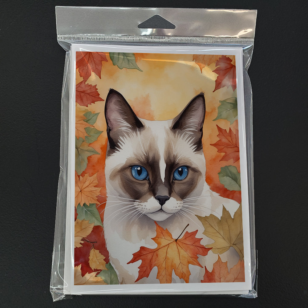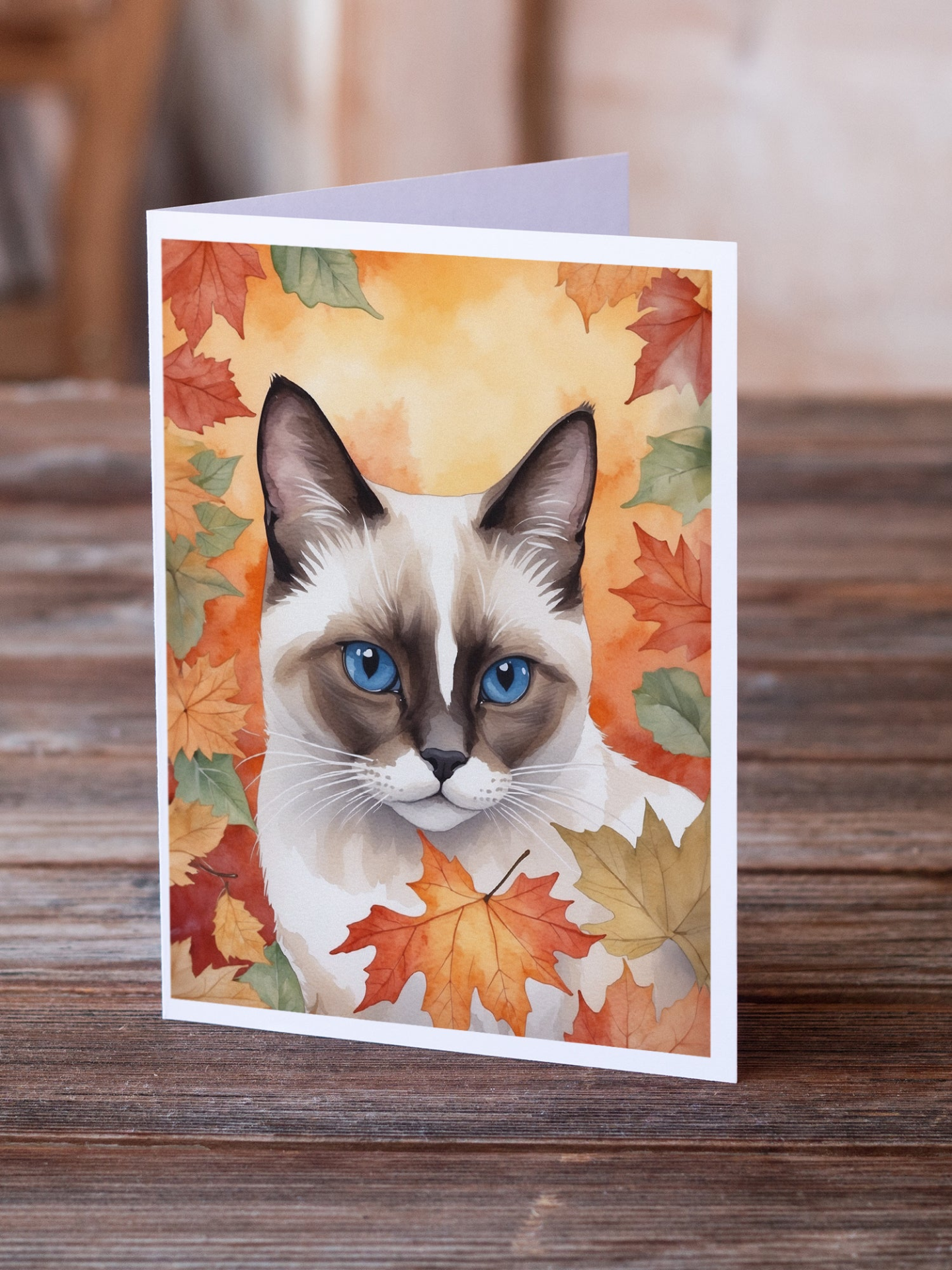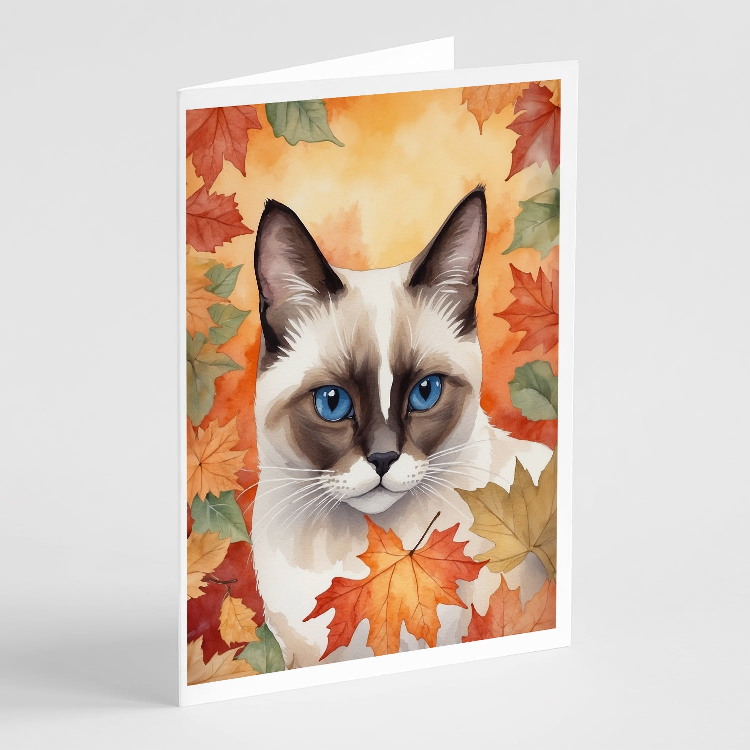 Greeting Cards Pack of 8 featuring breed specific Snowshoe artwork. Celebrate special moments with Caroline's Treasures Printed Greeting Card Pack. This pack includes eight beautifully folded 5x7 cards, accompanied by eight matching white envelopes. With blank interiors, these cards provide ample space for your personalized messages and heartfelt holiday greetings. Each card features captivating full-color artwork, meticulously printed in our facility on high-quality 80 lb cover stock or 216 GSM. The super smooth finish of the white cards enhances the visual impact of the artwork, creating a truly stunning presentation. Designed by our talented in-house artists or licensed artists, the artwork on these cards showcases their creativity and attention to detail. From vibrant illustrations to captivating designs, each card tells its own unique story. Whether it's for birthdays, anniversaries, holidays, or any special occasion, Caroline's Treasures Greeting Card Pack is the perfect way to convey your heartfelt sentiments. Share joy, love, and warm wishes with these exquisite cards and make every moment unforgettable.