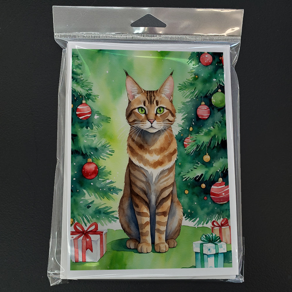 Sokoke Cat By the Christmas Tree Greeting Cards Pack of 8