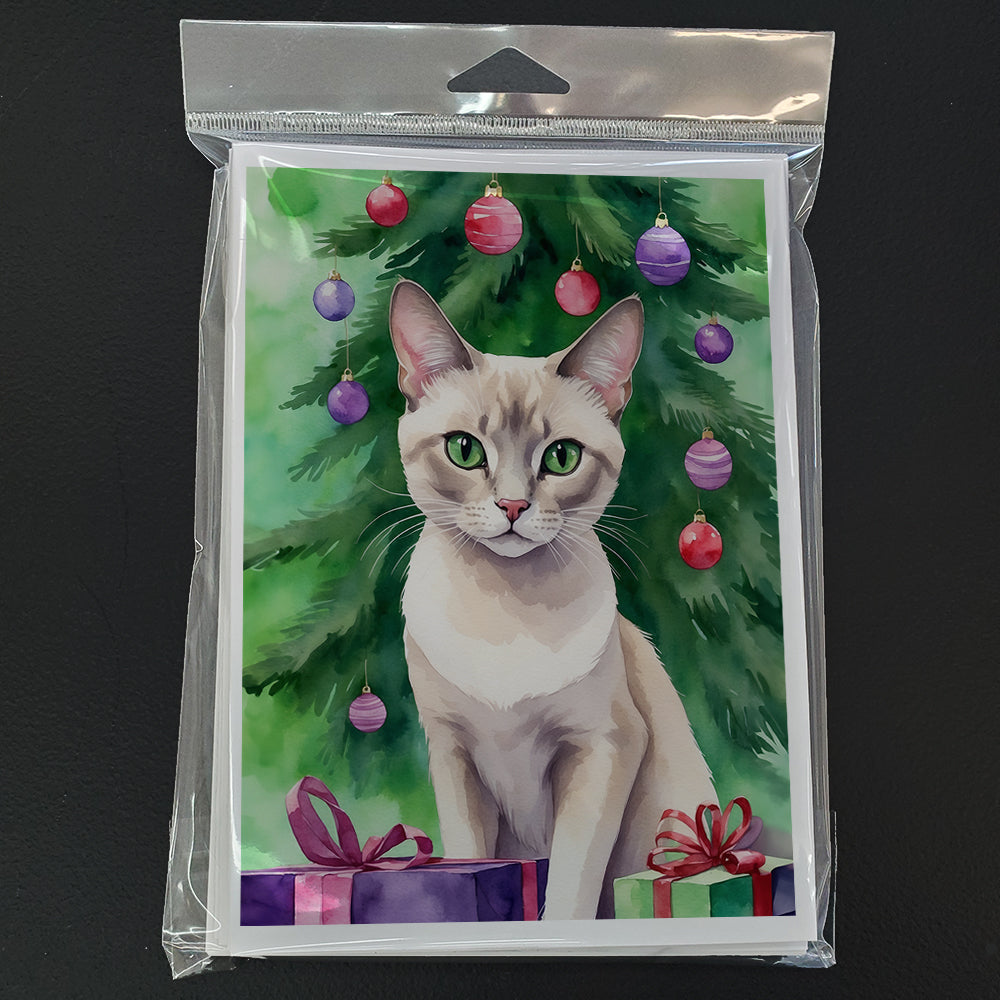 Thai Lilac Cat By the Christmas Tree Greeting Cards Pack of 8