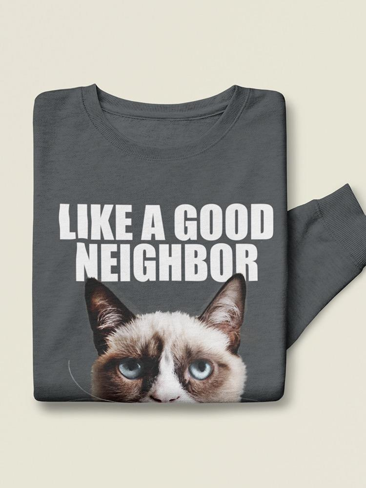 If you are fan of Grumpy Cat, you need this!. A design of Grumpy Cat face with a hate quote for those noisy neighbors. Men's Black Sweatshirt. Design by Grumpy Cat.