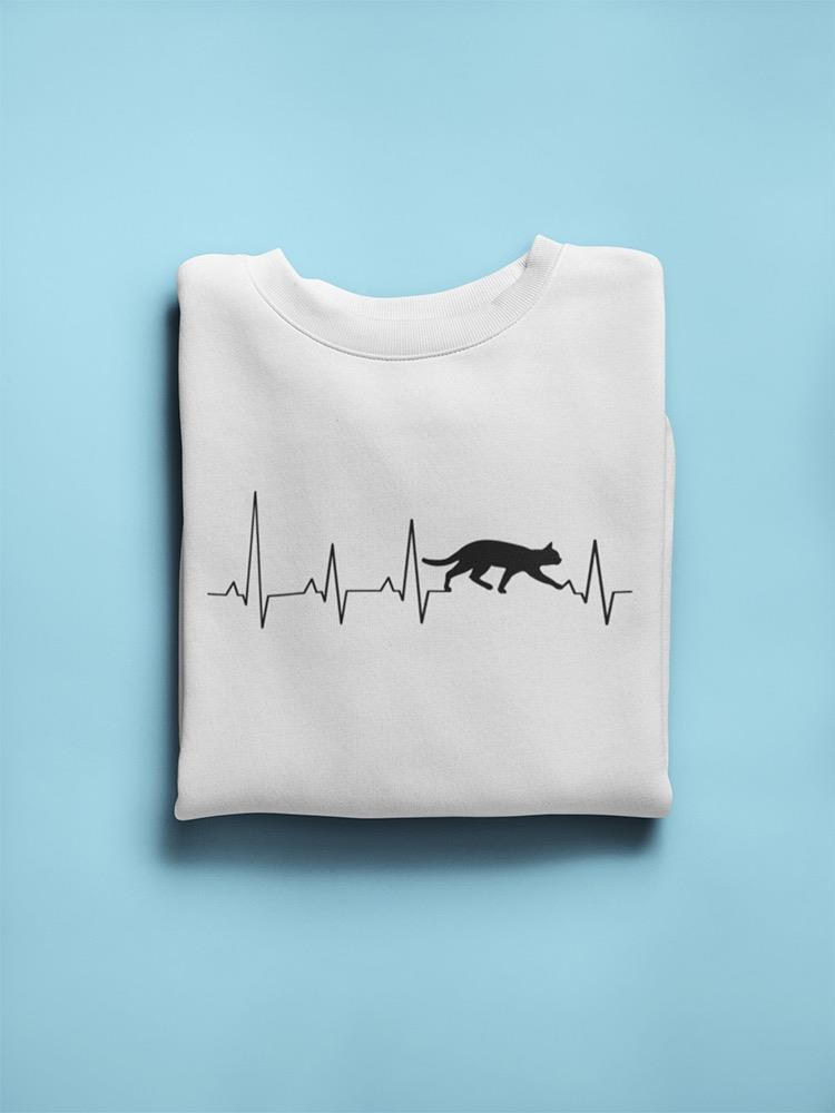 Great Design For People Who Love Cats So Much That Their Heartbeat Resembles A Cat. Women's White Sweatshirt. Design by Smartprints.
