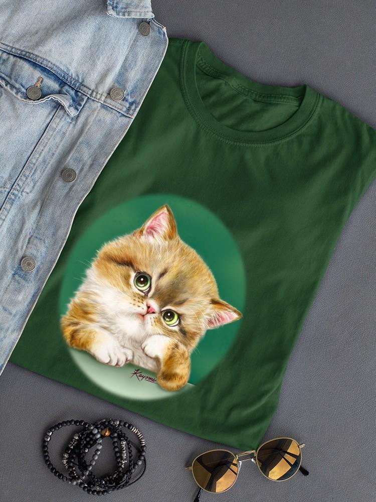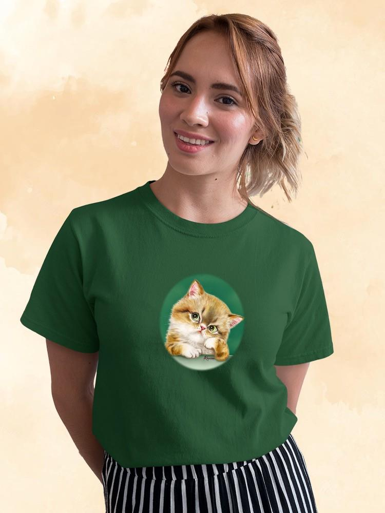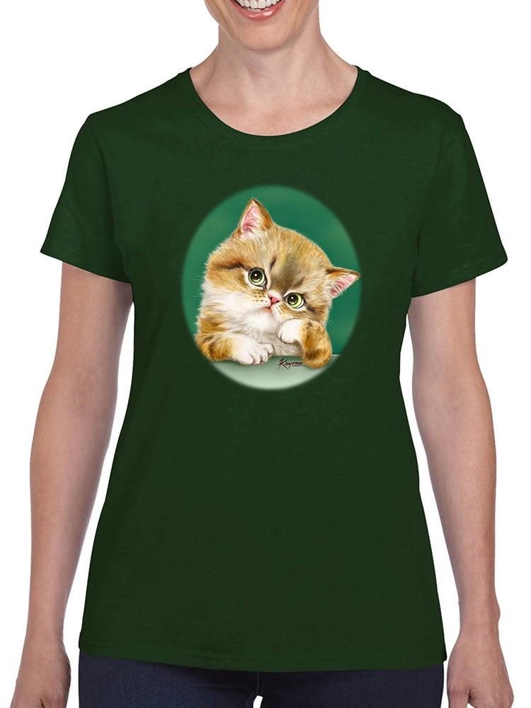 A Curious Cat T-shirt -Kayomi Harai Designs - T-shirt Female / Forest Green / 2XL is backordered and will ship as soon as it is back in stock.