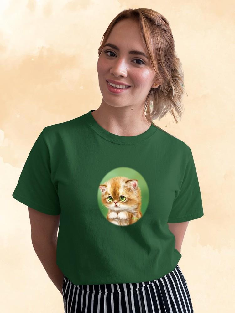 Ashamed Cat T-shirt -Kayomi Harai Designs - T-shirt Female / Forest Green / 5XL is backordered and will ship as soon as it is back in stock.