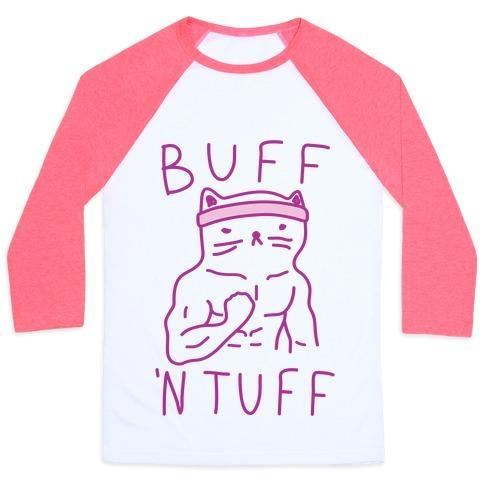 BUFF 'N TUFF CAT UNISEX CLASSIC BASEBALL TEE - Unisex Classic Baseball Tee / x-large / White/Neon Pink is backordered and will ship as soon as it is back in stock.