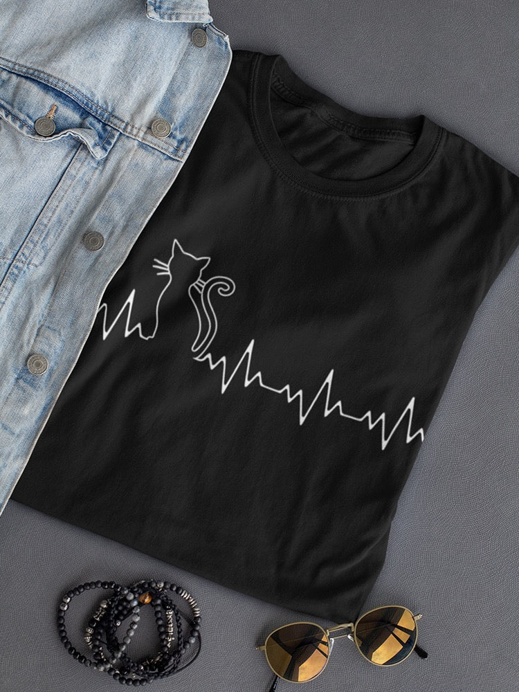 Cardiogram Cat Graphic Women's T-shirt - M / Female / Black is backordered and will ship as soon as it is back in stock.
