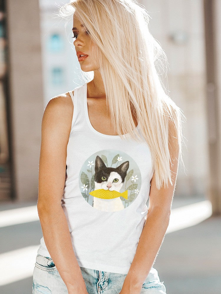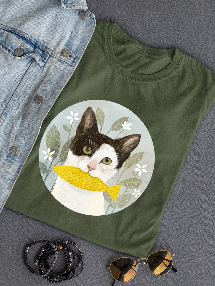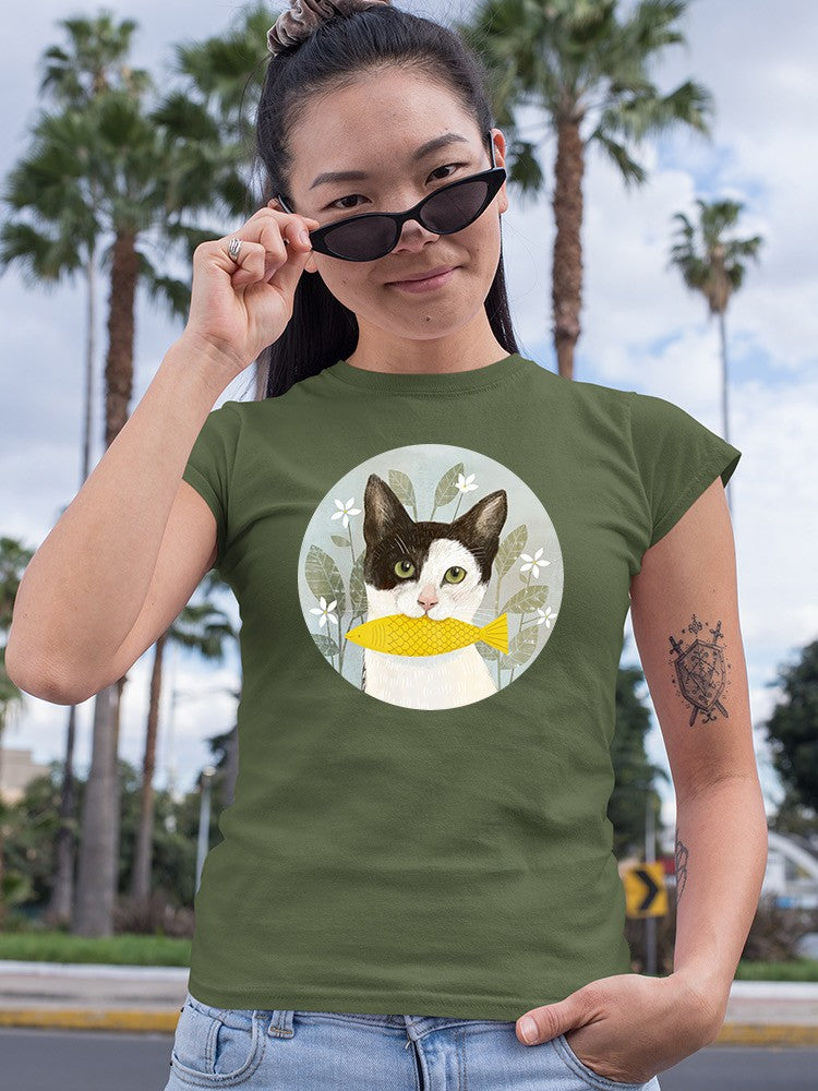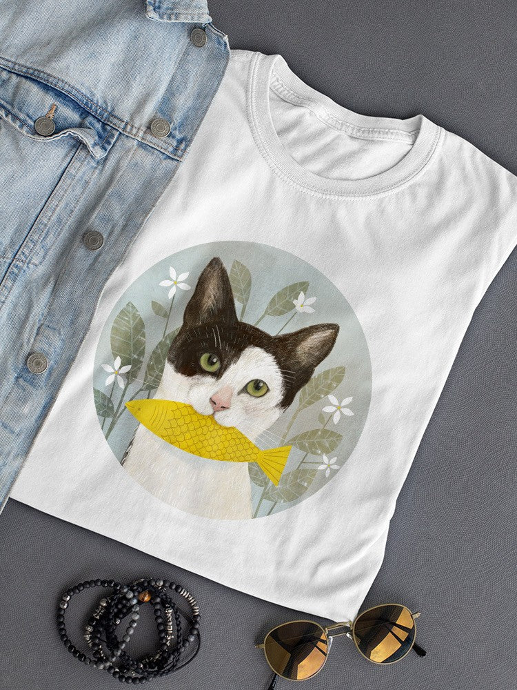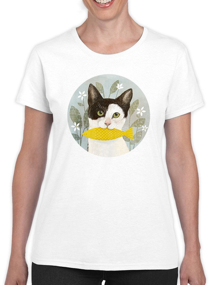 Cat Holding A Fish T-shirt -Victoria Borges Designs